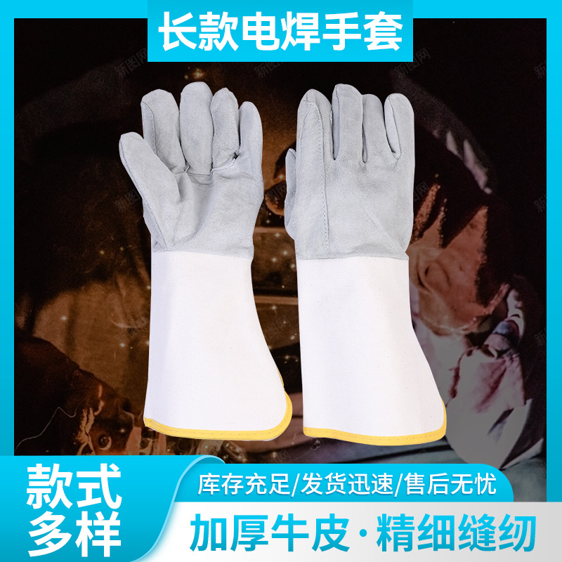 긴 용접 장갑 공장 도매 소가죽 이중 두꺼운 노동 보호 단열 방열 보호 용접공 전용스토어 가기