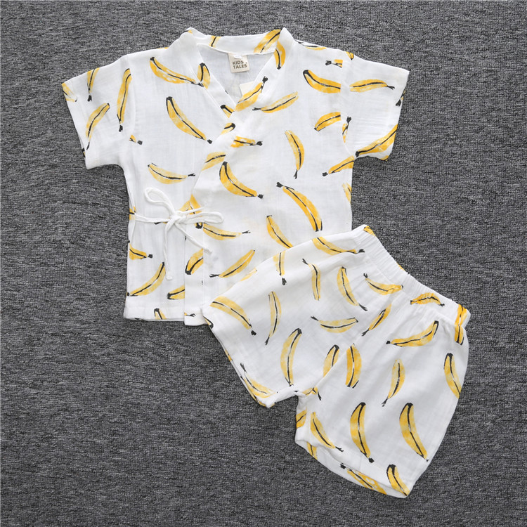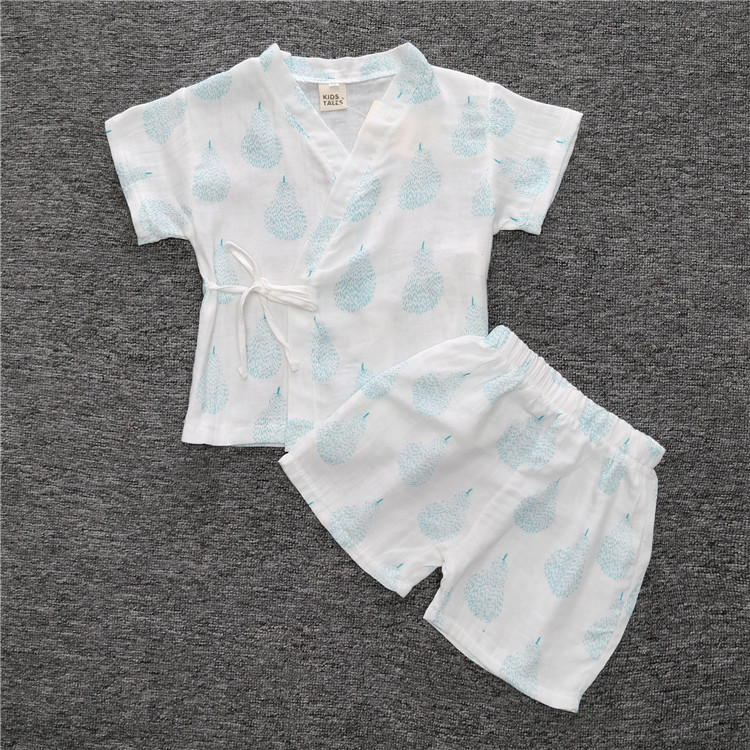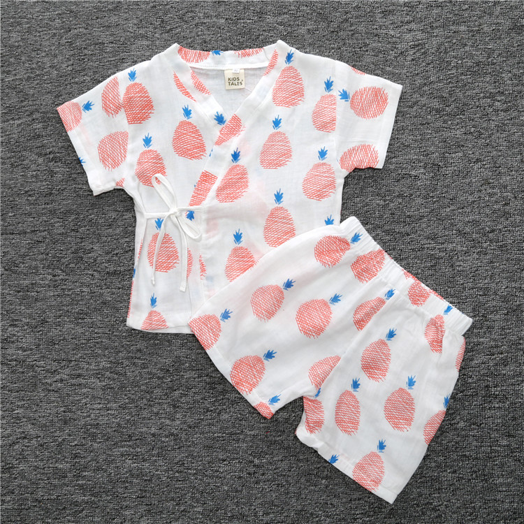 【产品名称】儿童睡衣套装纱布韩版春夏季空调服卡通水果中小童家居服一件代发