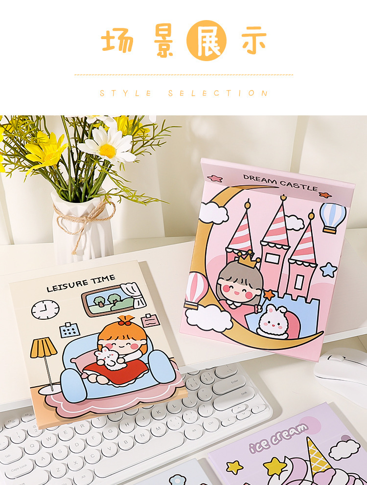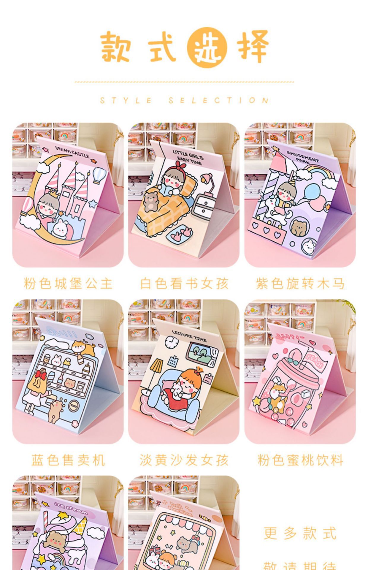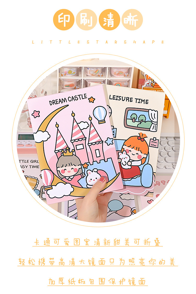 데스크탑 메이크업 거울 데스크탑 대형 만화 접이식 거울 여성용 휴대용 기숙사 학생 종이 거울 기내 드레싱