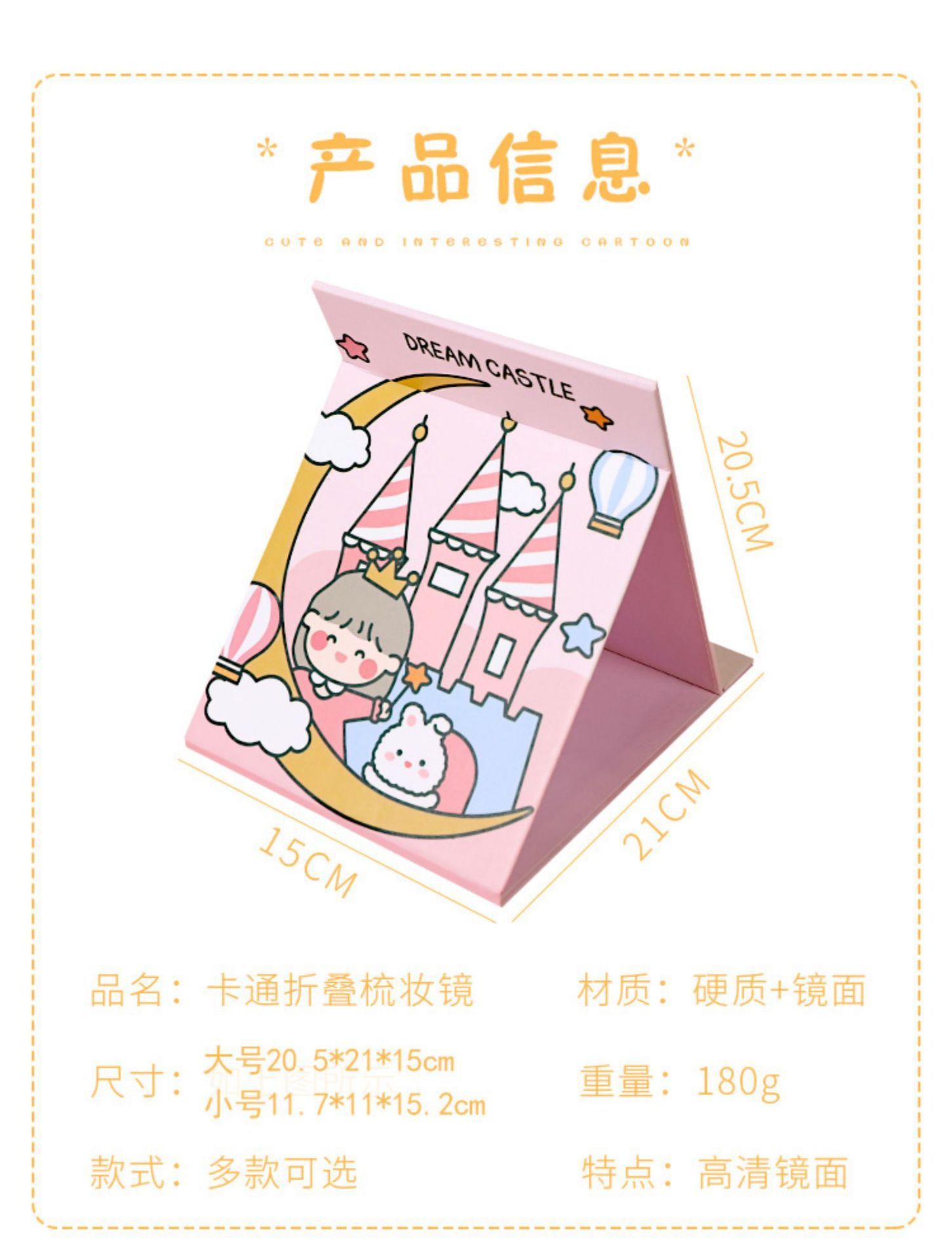 데스크탑 메이크업 거울 데스크탑 대형 만화 접이식 거울 여성용 휴대용 기숙사 학생 종이 거울 기내 드레싱스토어 가기