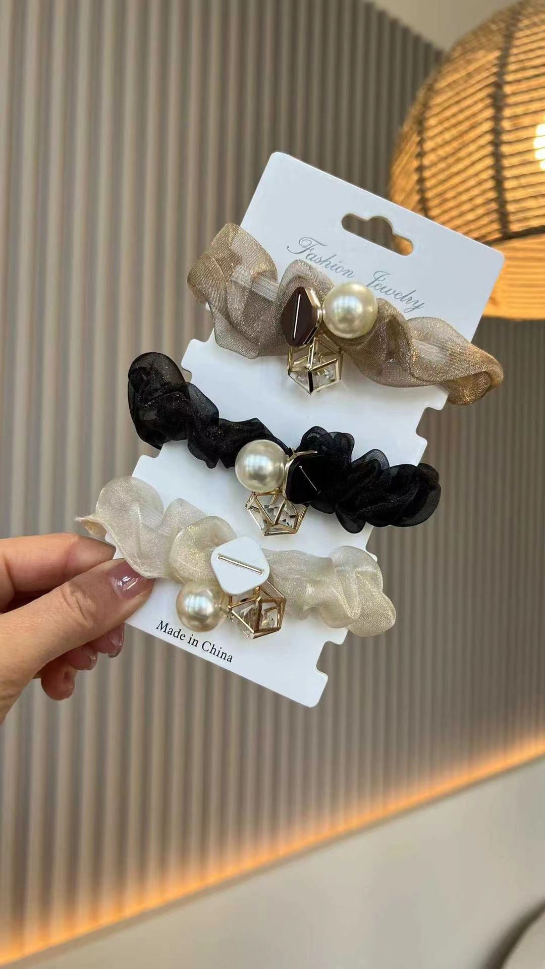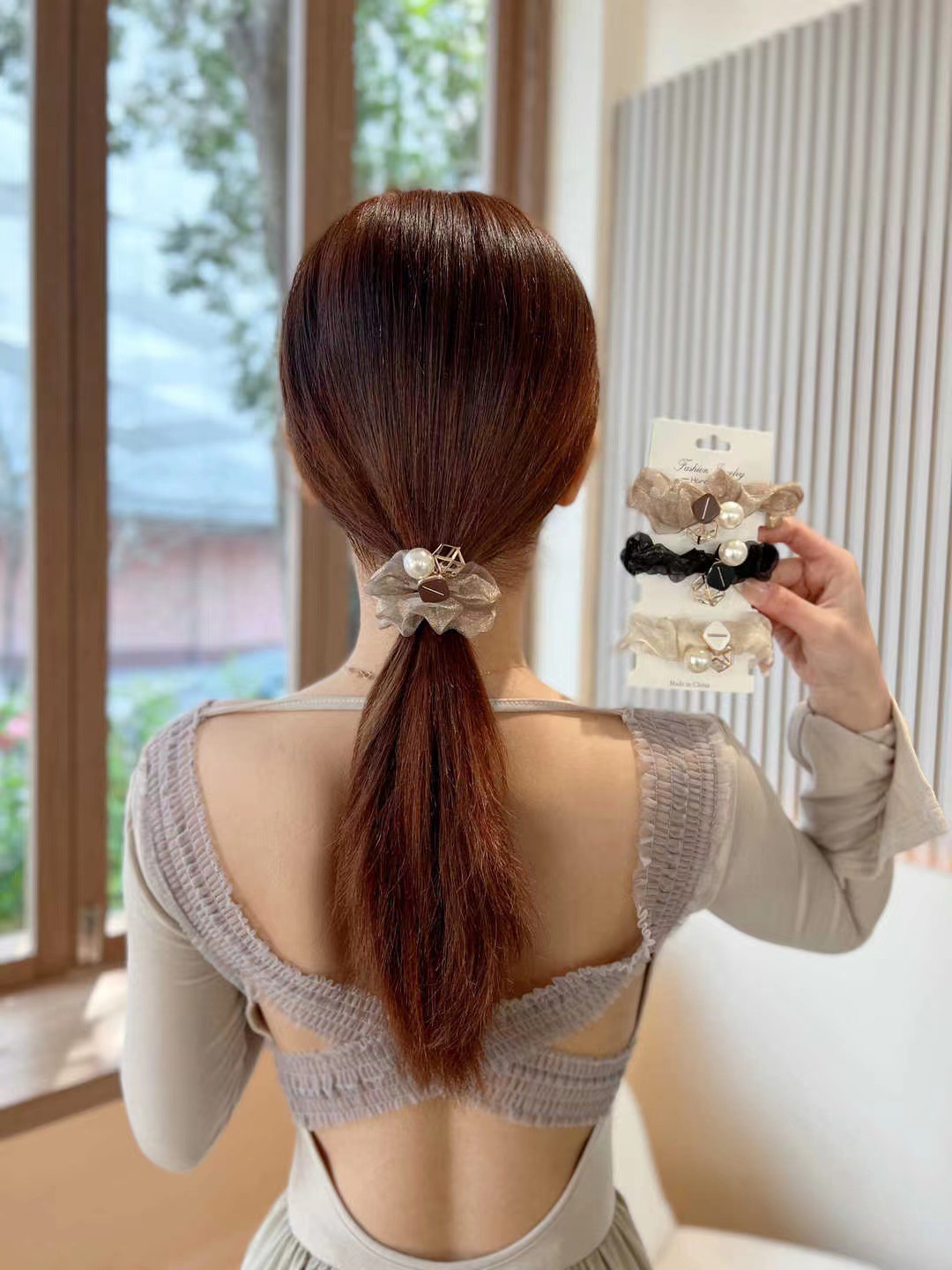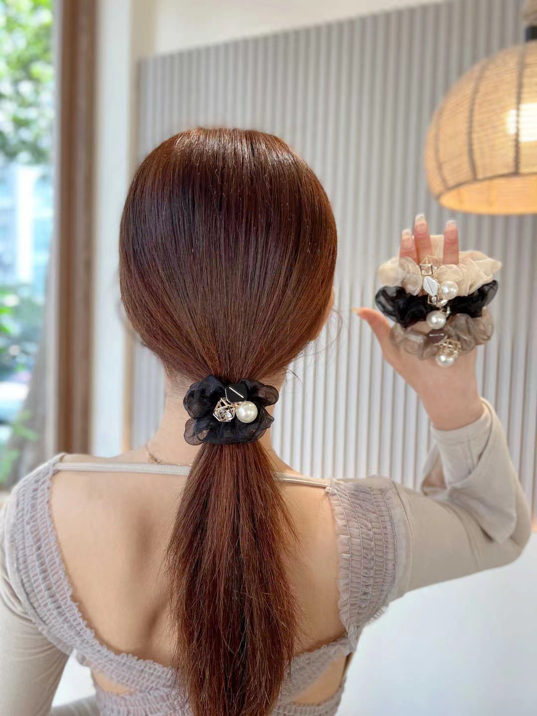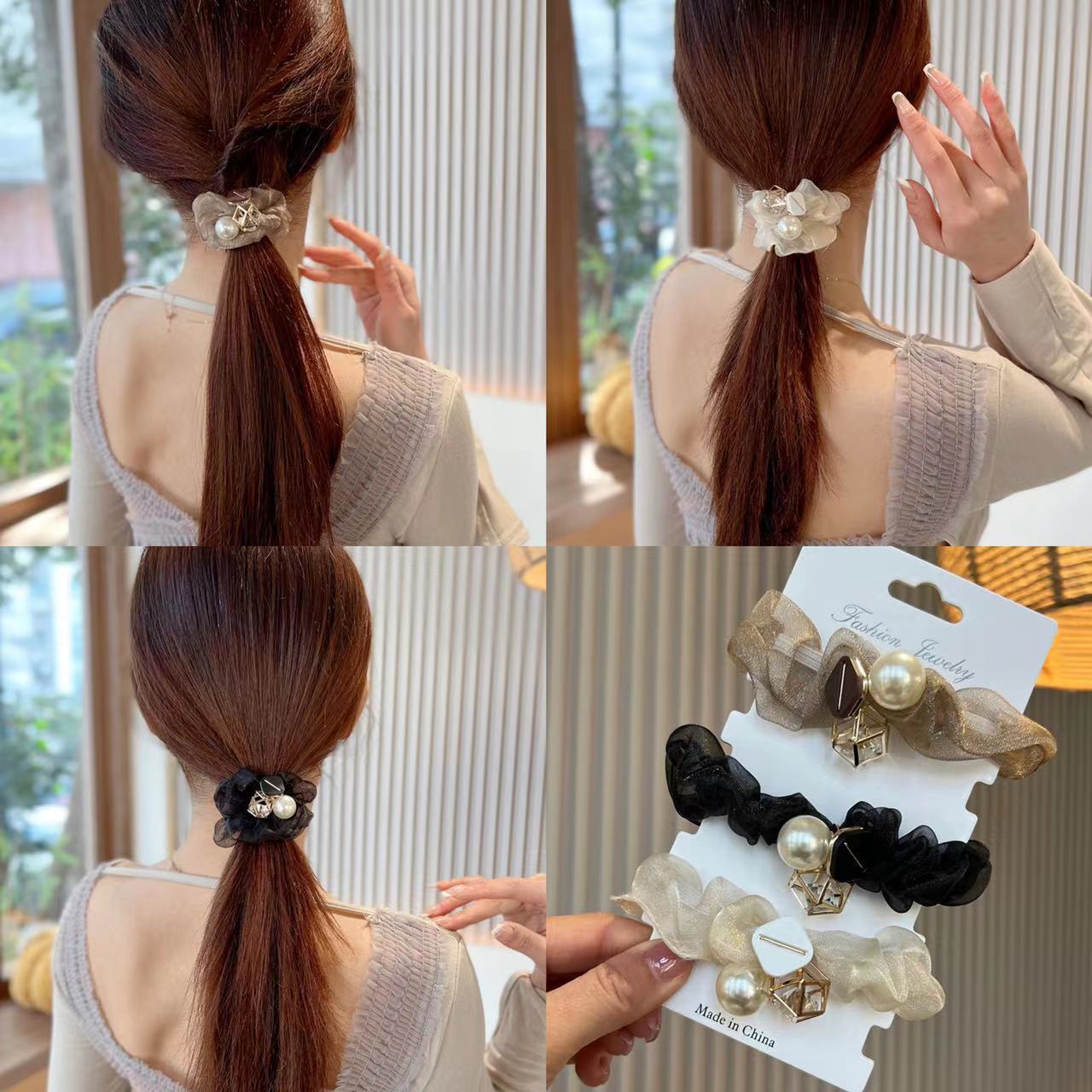 • 진주 메쉬 헤어 링 opp 가방