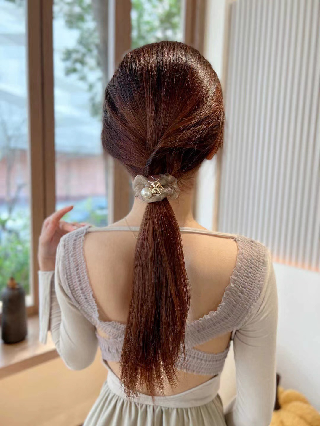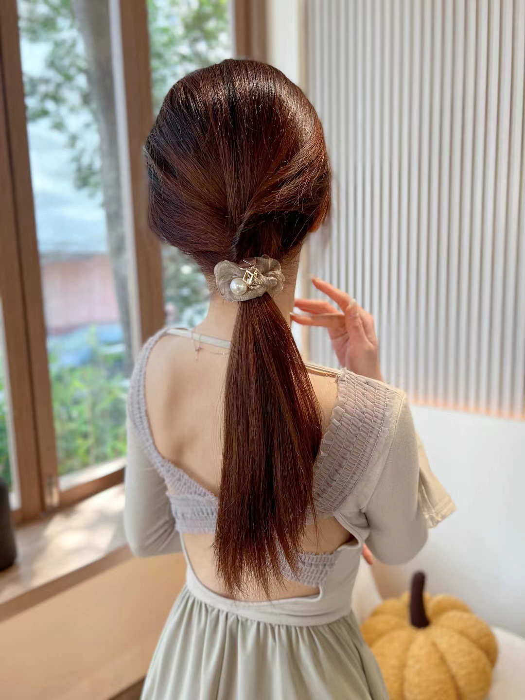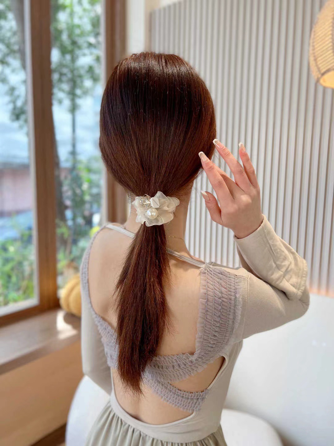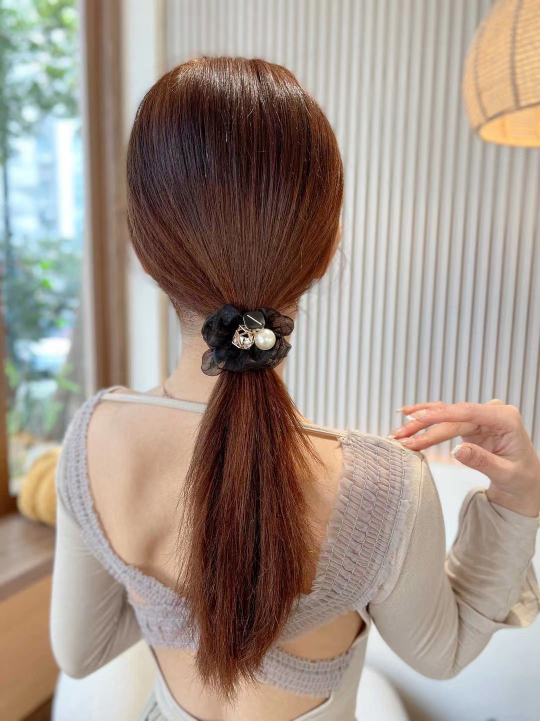 • 진주 메쉬 헤어 링 opp 가방
