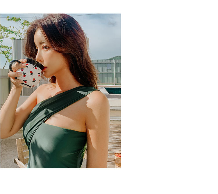 일본과 한국의 새로운 스타일 여성용 원피스 솔리드 컬러 수영복 원 숄더 섹시 슬림 배꼽 덮기 온라인 인기 여행 휴가 수영복