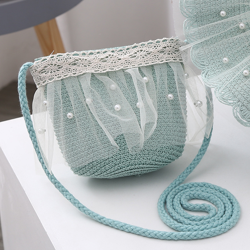 • 블루 세트 (얇은 명주 그물 구슬 밀짚 모자)