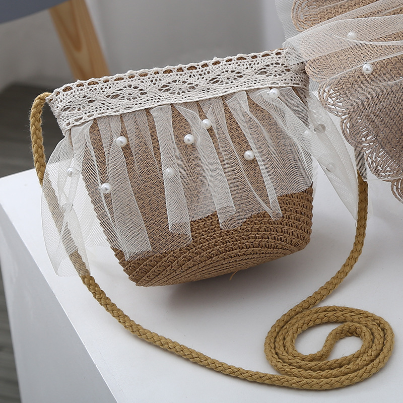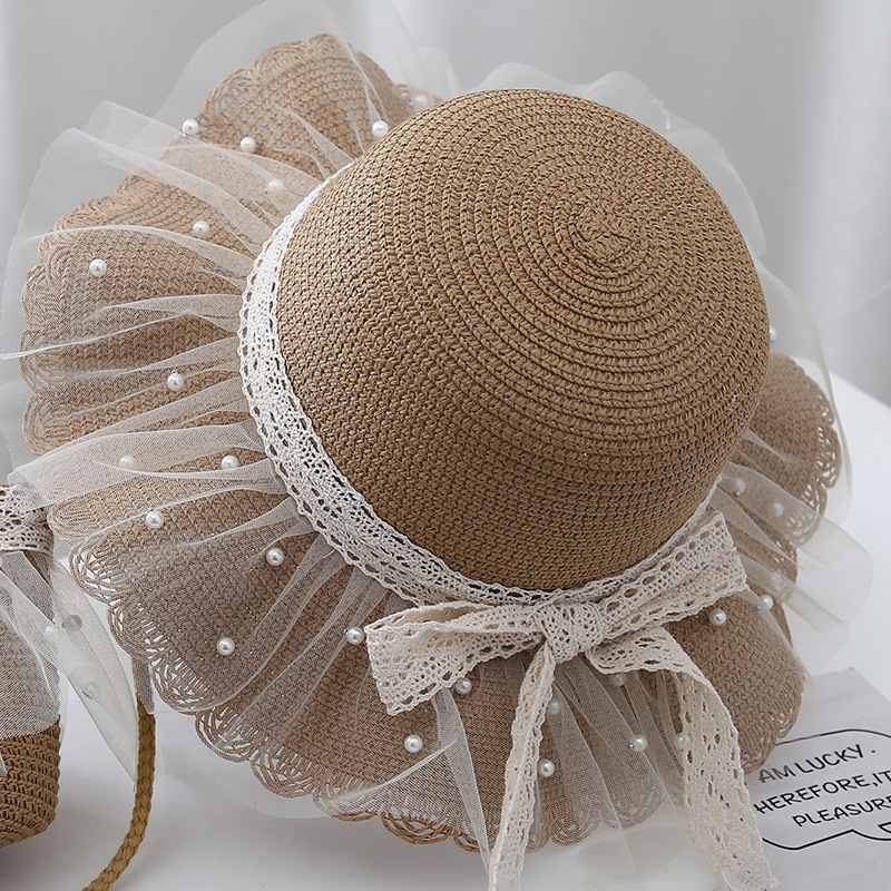 • 카키 세트 (얇은 명주 그물 구슬 밀짚 모자)