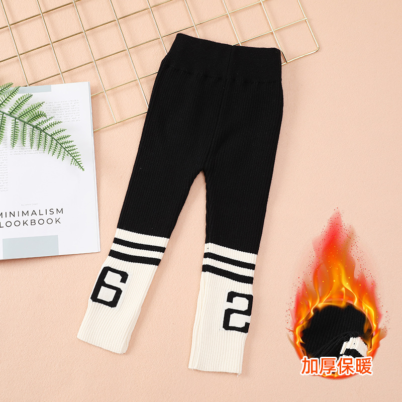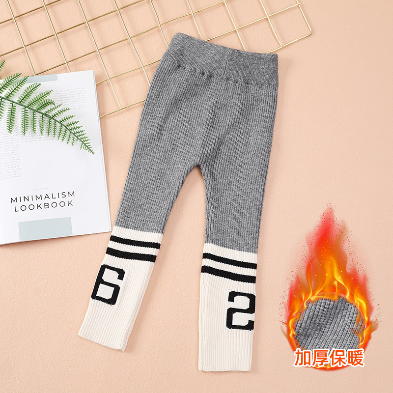 아기 소녀를위한 봄과 가을 복장을위한 여아 레깅스 서양식 두꺼운 어린이 양모 바지 어린이 가을과 겨울 니트 바지