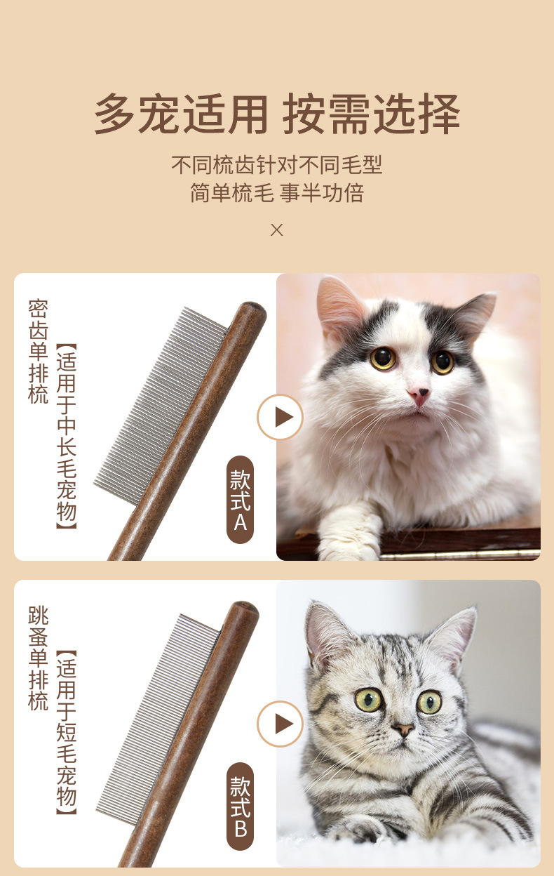 애완 동물 빗 청소 벼룩 떠 다니는 머리 기타 머리 조밀 한 이빨 행 바늘 빗 청소 아름다움 오픈 매듭 빗 공장 직접 재고스토어 가기