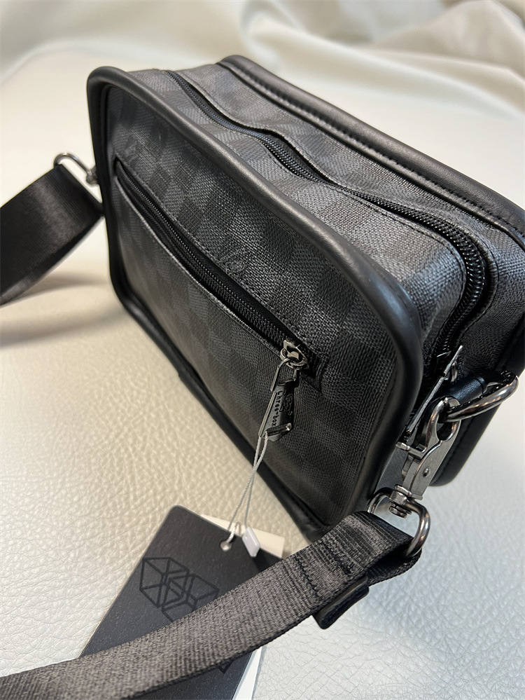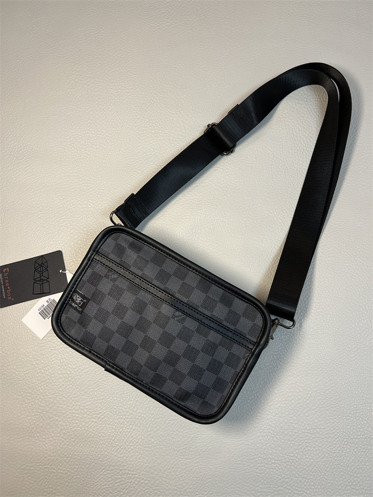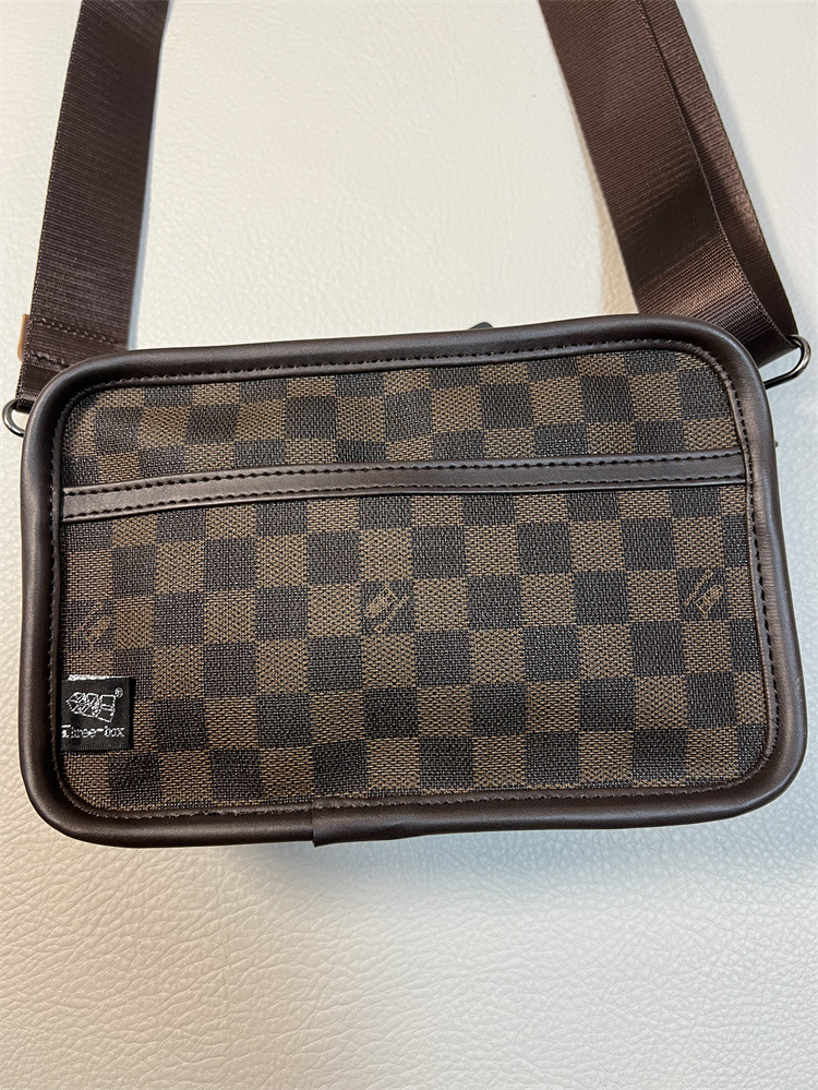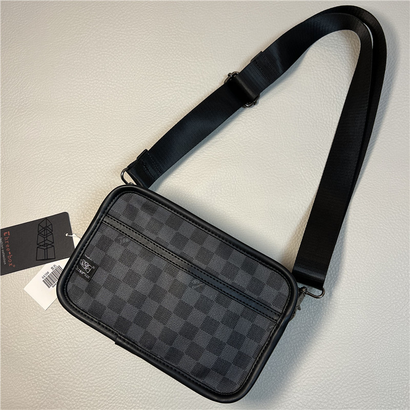 threebox潮男格子简约单肩包 休闲格纹斜挎小包 日韩时尚斜跨背包