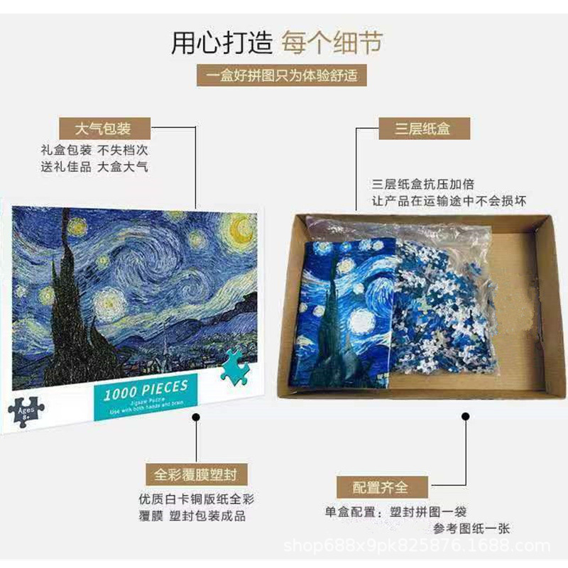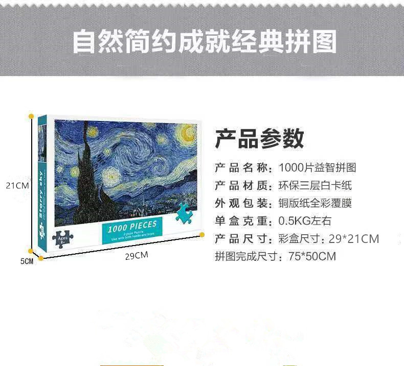 직소 퍼즐 종이 1000 조각 75*50cm 성인 어린이 교육 장난감 조립 야시장 마구간 머리카락스토어 가기