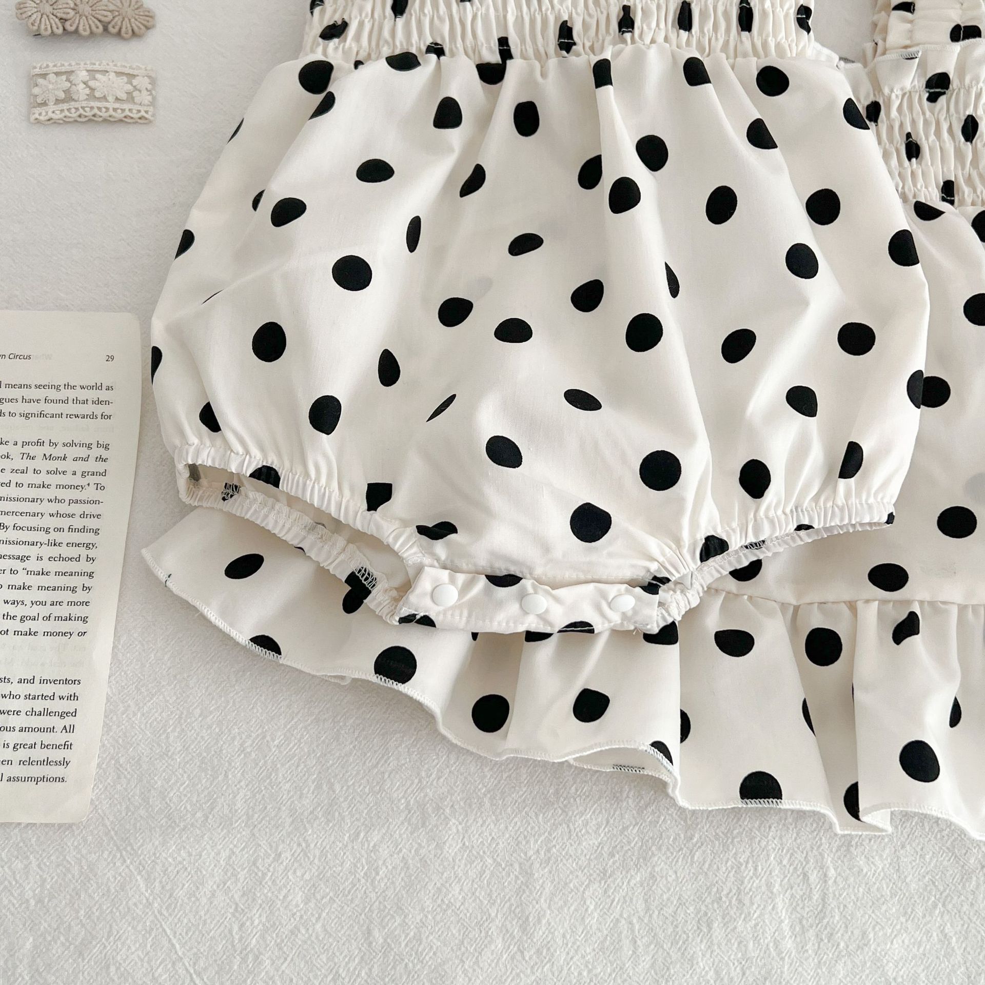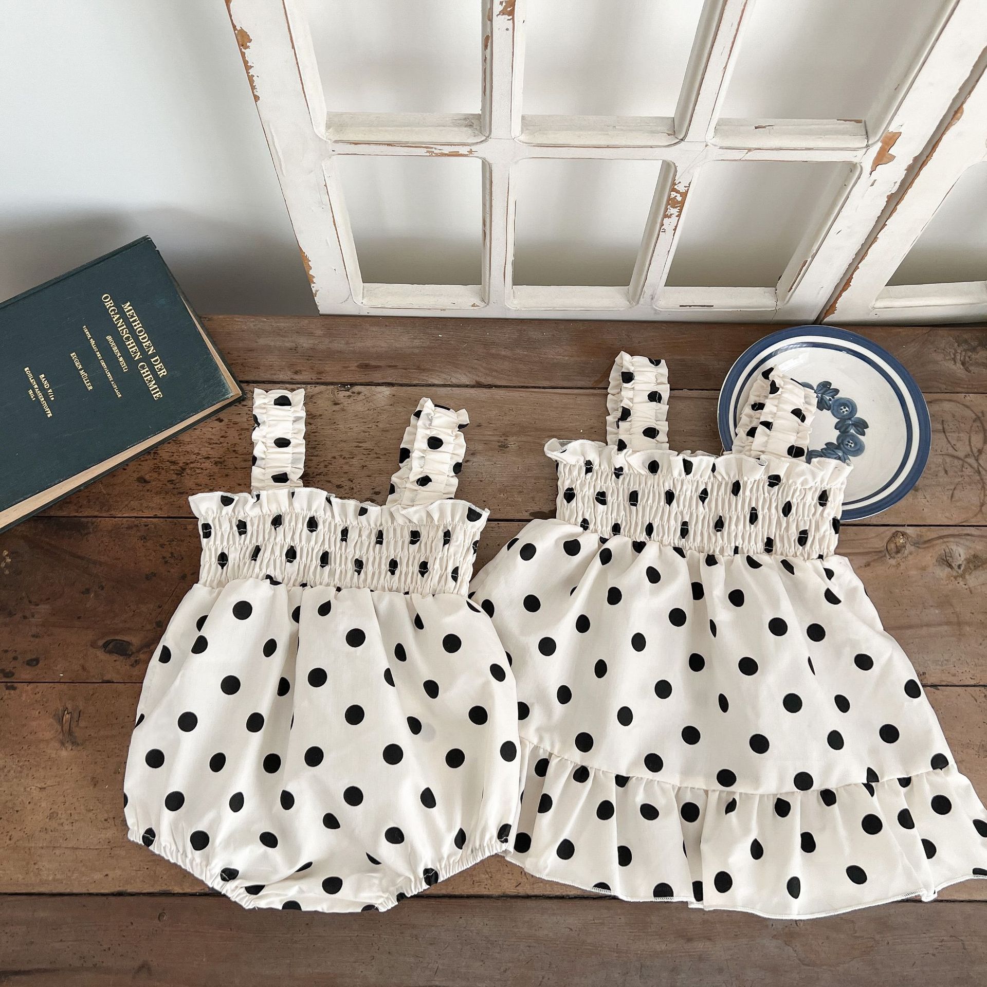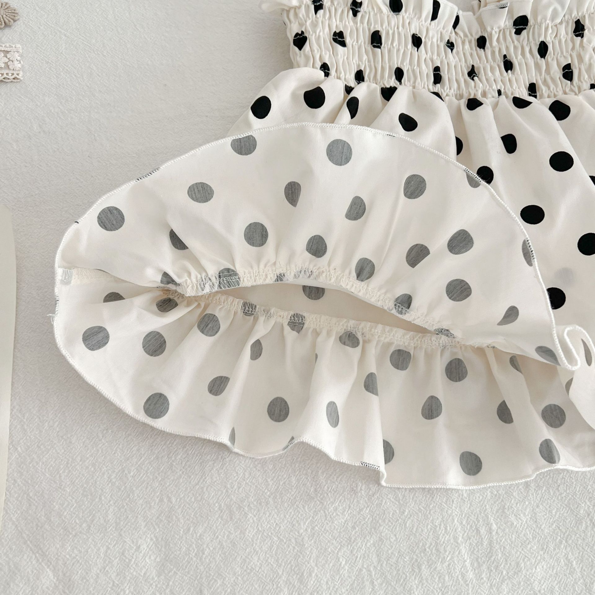 한국 스타일 아기 여름 슬링 스트랩 서양 스타일 웨이브 도트 헤어 원피스 신생아 공주 원피스 여름 아기 소녀 슬링 원피스 세트