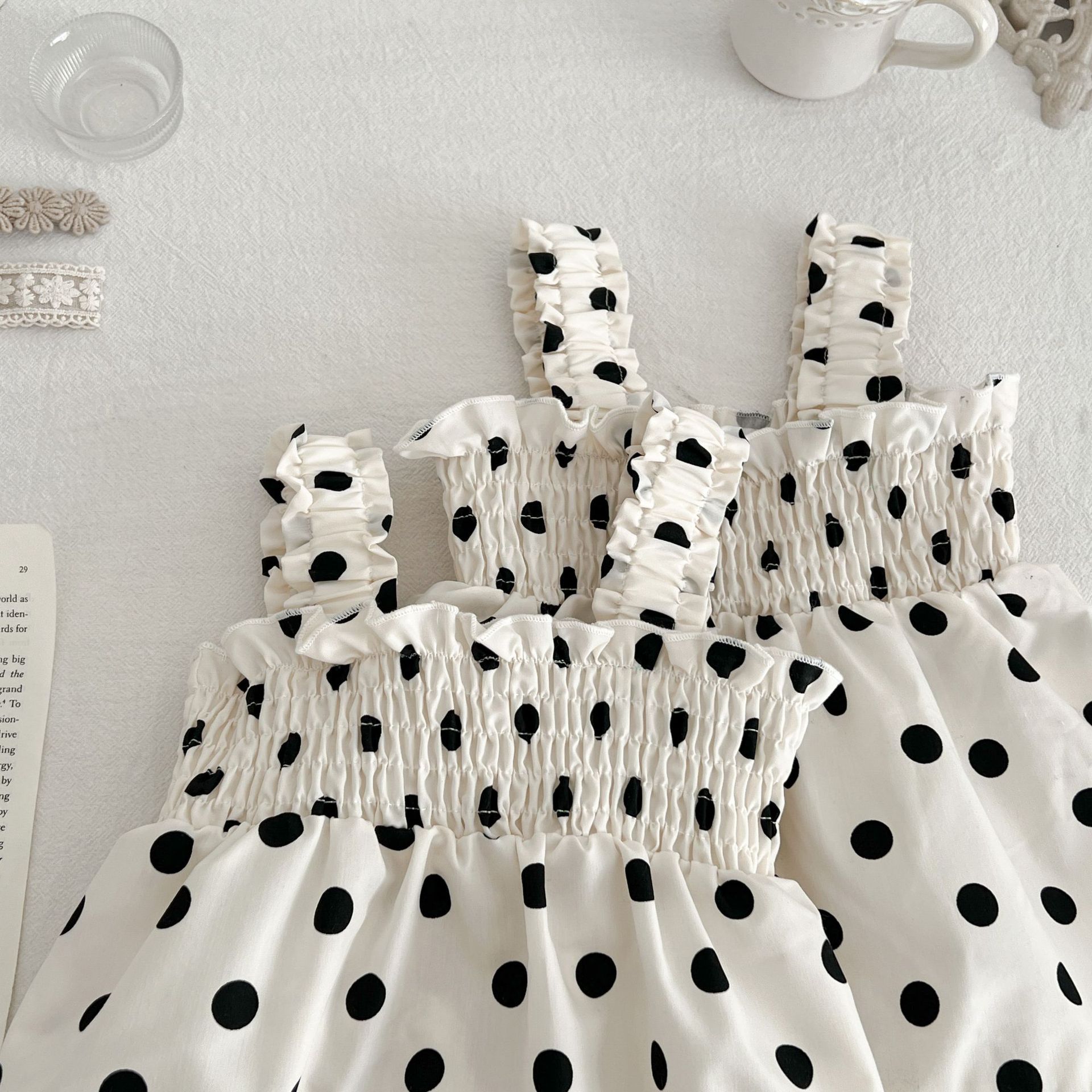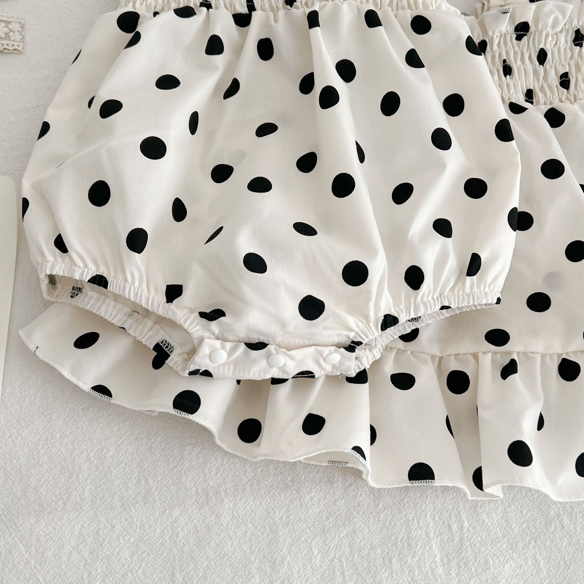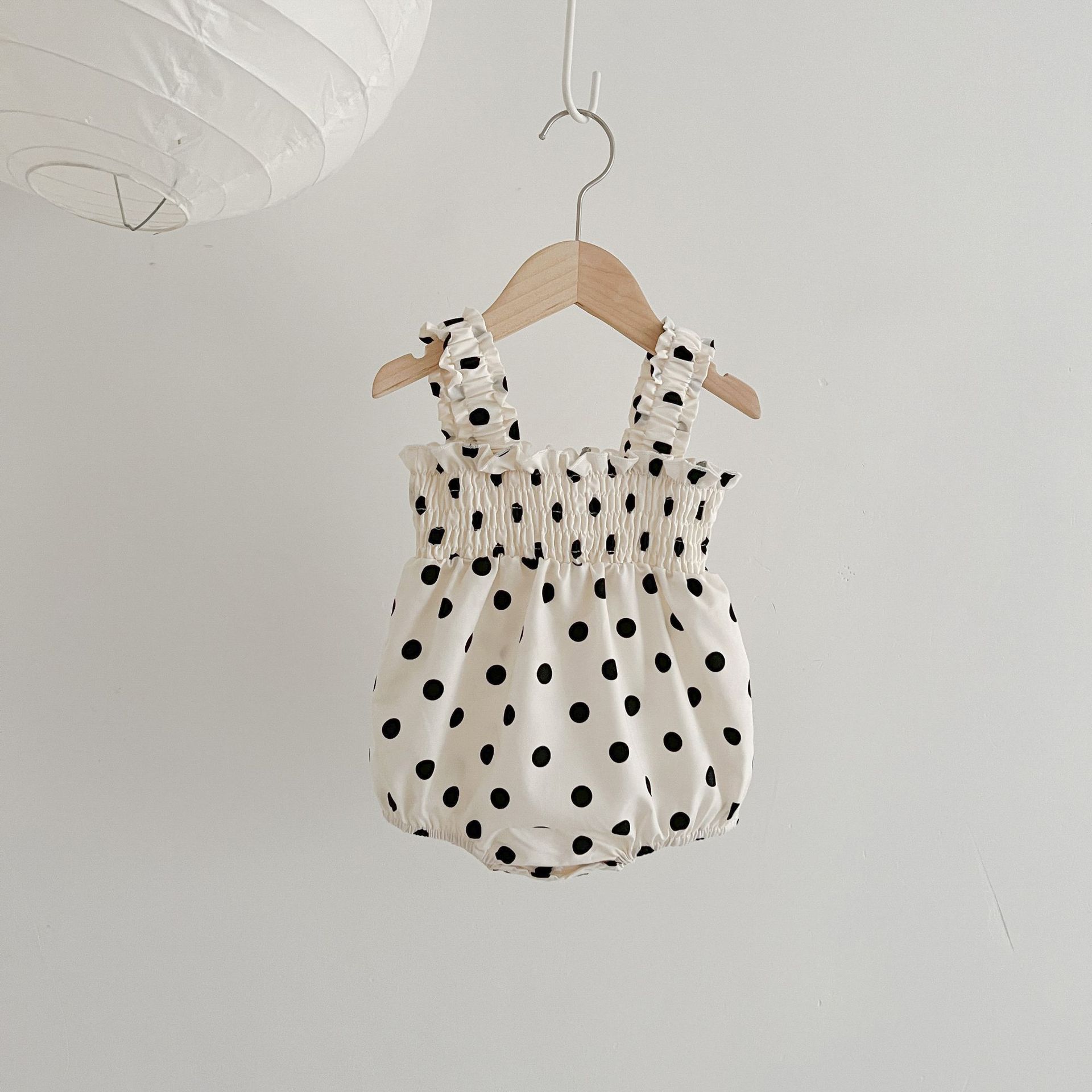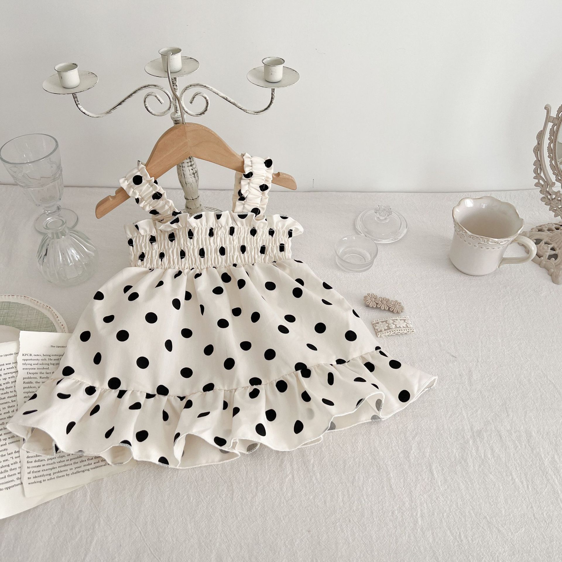 한국 스타일 아기 여름 슬링 스트랩 서양 스타일 웨이브 도트 헤어 원피스 신생아 공주 원피스 여름 아기 소녀 슬링 원피스 세트