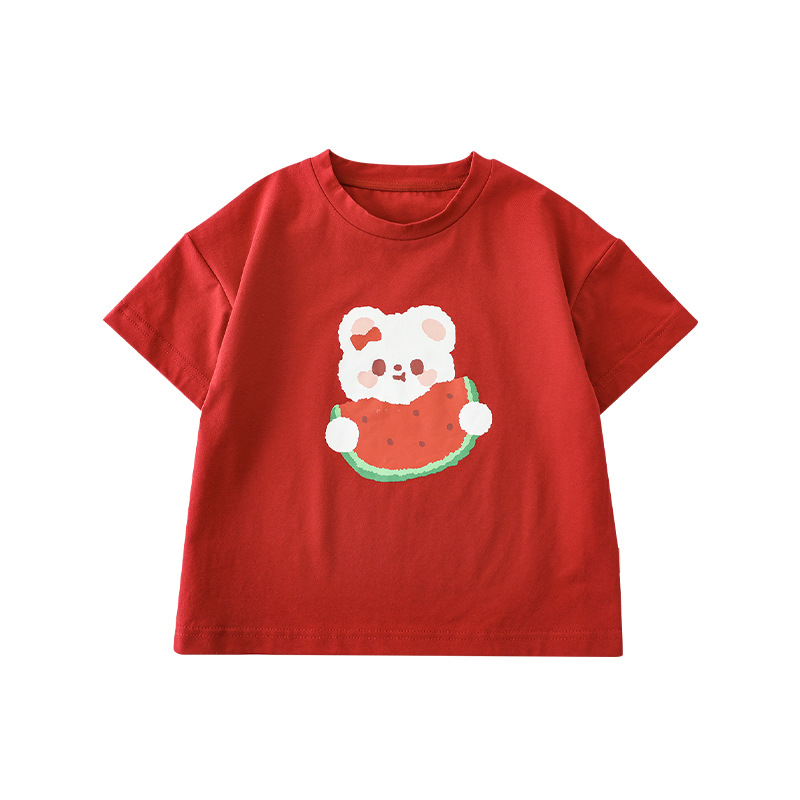 Qiu Duomeng 소녀의 만화 토끼 프린트 티셔츠 어린이 반팔 귀여운 티셔츠 아기의 여름 새로운 얇은 탑스토어 가기