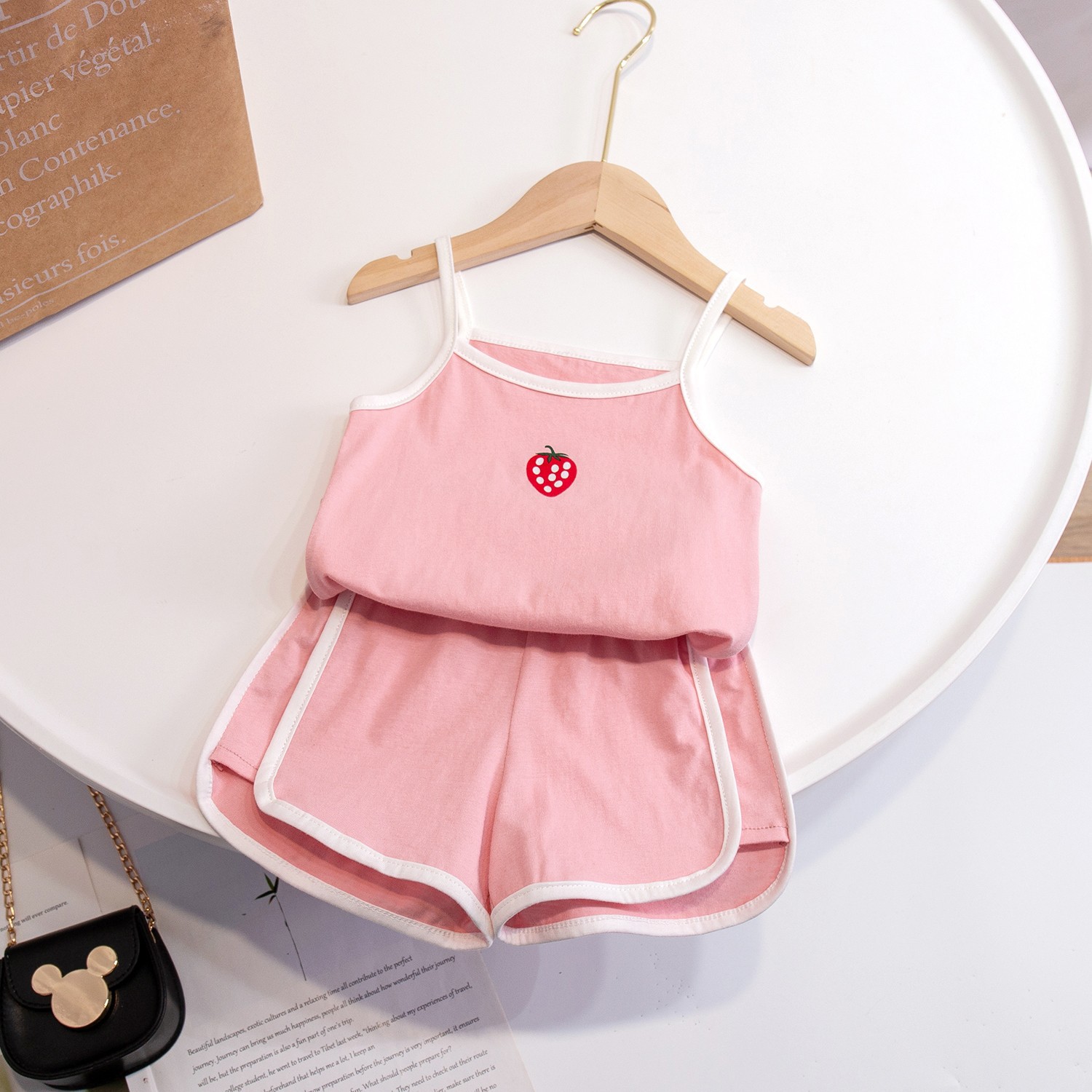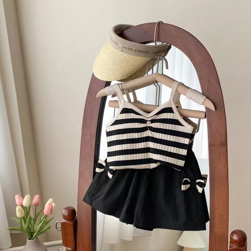 한국 스타일 외국 스타일 2023 여름 새로운 한국 스타일 외국 스타일 귀여운 주름 탑 반바지 여아 세트 투피스 유행 세트