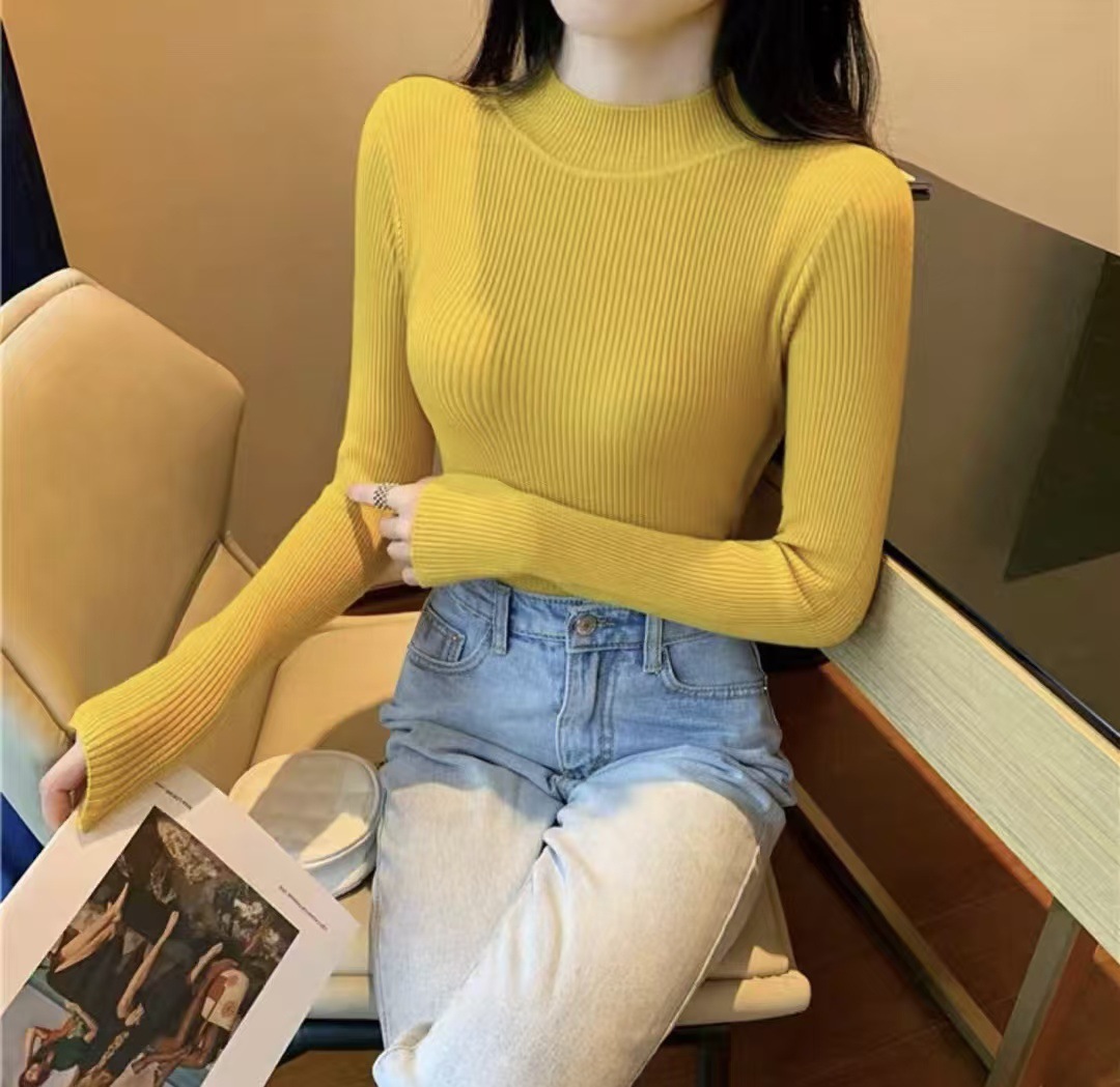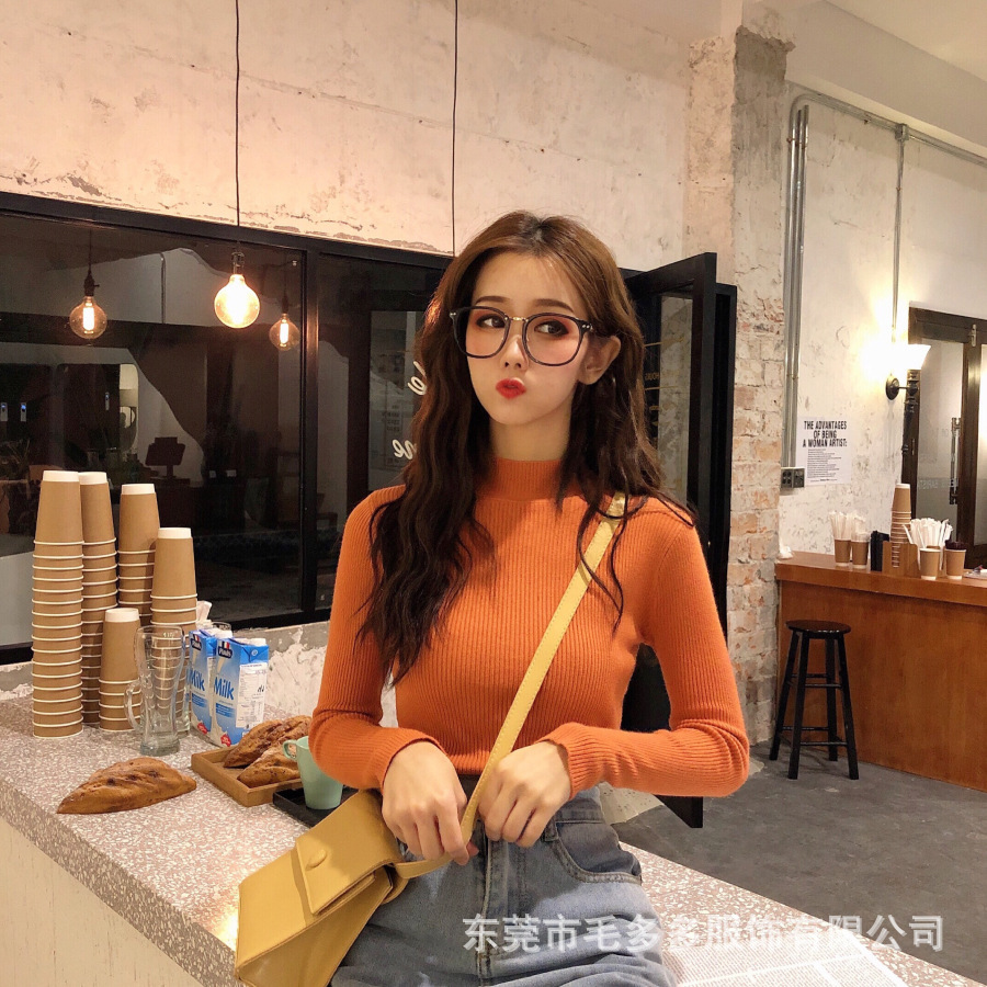 제조 업체 도매 하프 터틀넥 바닥 스웨터 여성 가을, 겨울 긴팔 슬림 피트 다목적 서양식 니트 스웨터 탑스토어 가기