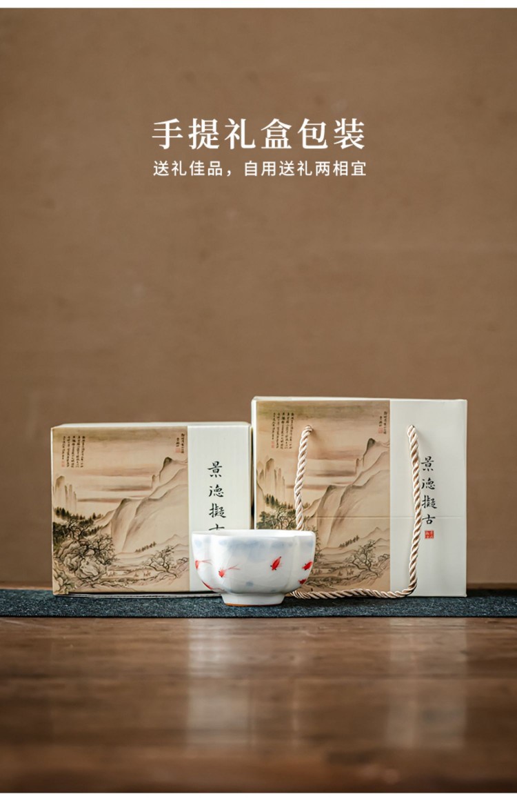 바이 루 가마 손으로 그린 작은 물고기 개인 찻잔 찻잔 마스터 컵 도자기 조각 찻잔 쿵푸 차 세트 선물 상자스토어 가기