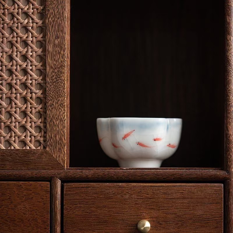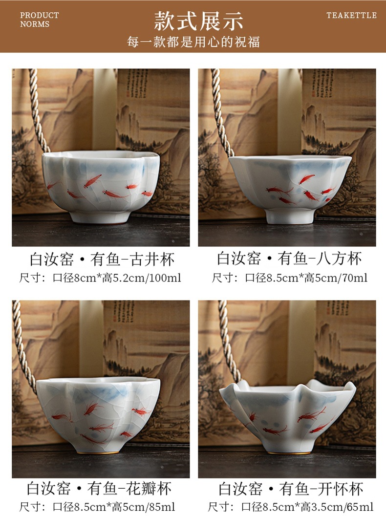 바이 루 가마 손으로 그린 작은 물고기 개인 찻잔 찻잔 마스터 컵 도자기 조각 찻잔 쿵푸 차 세트 선물 상자