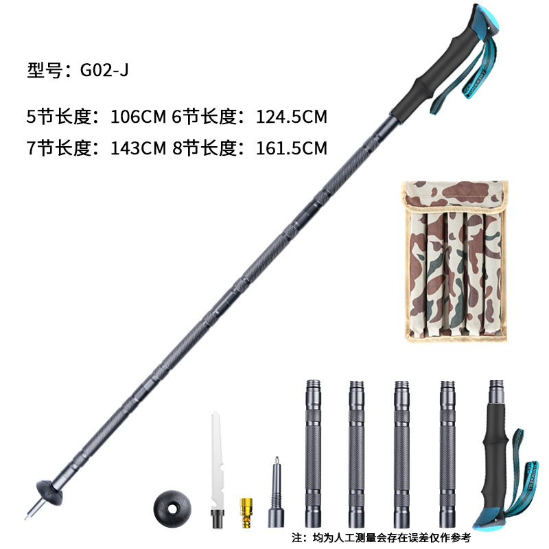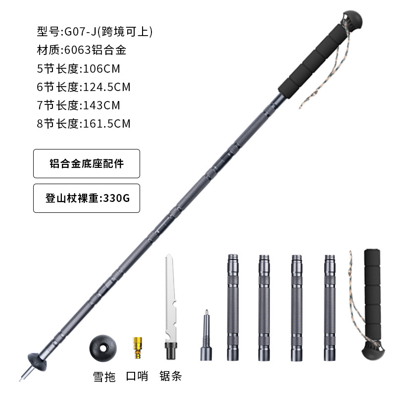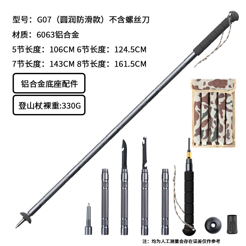 경량 다기능 등산 스틱 접이식 텔레스코픽 야외 하이킹 전술 방어 스틱 알루미늄 합금 등반 스틱