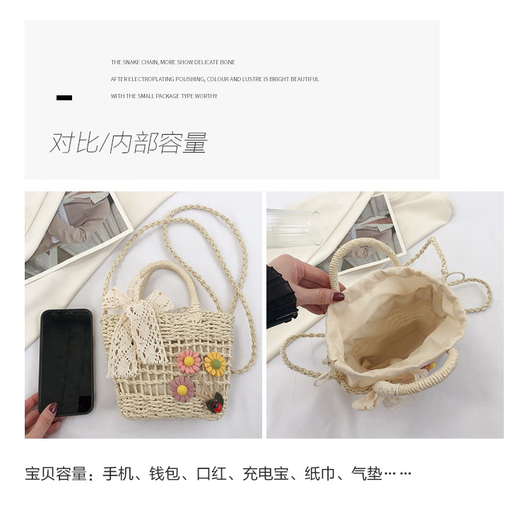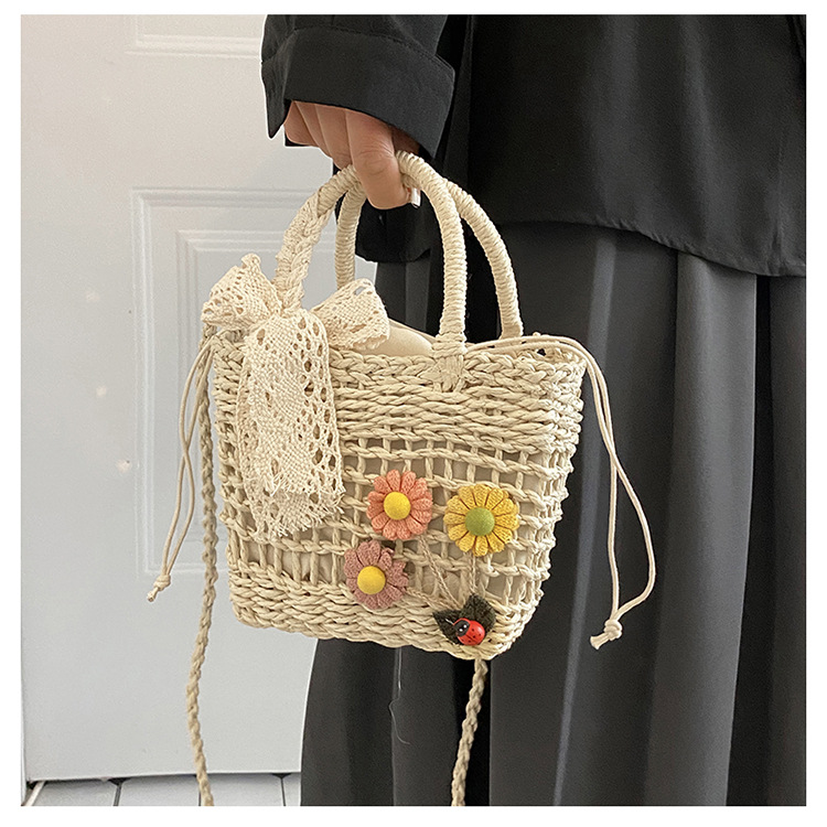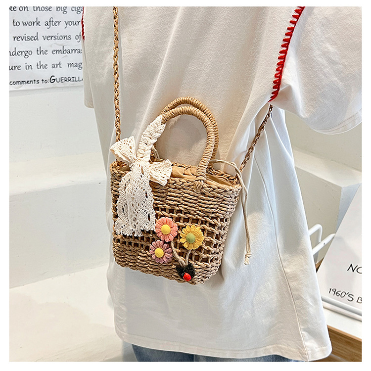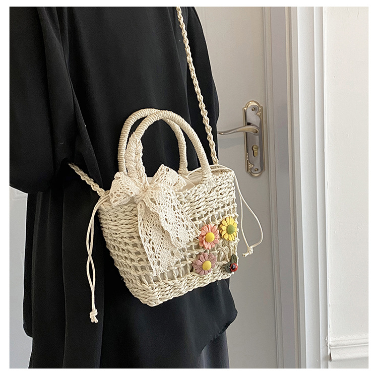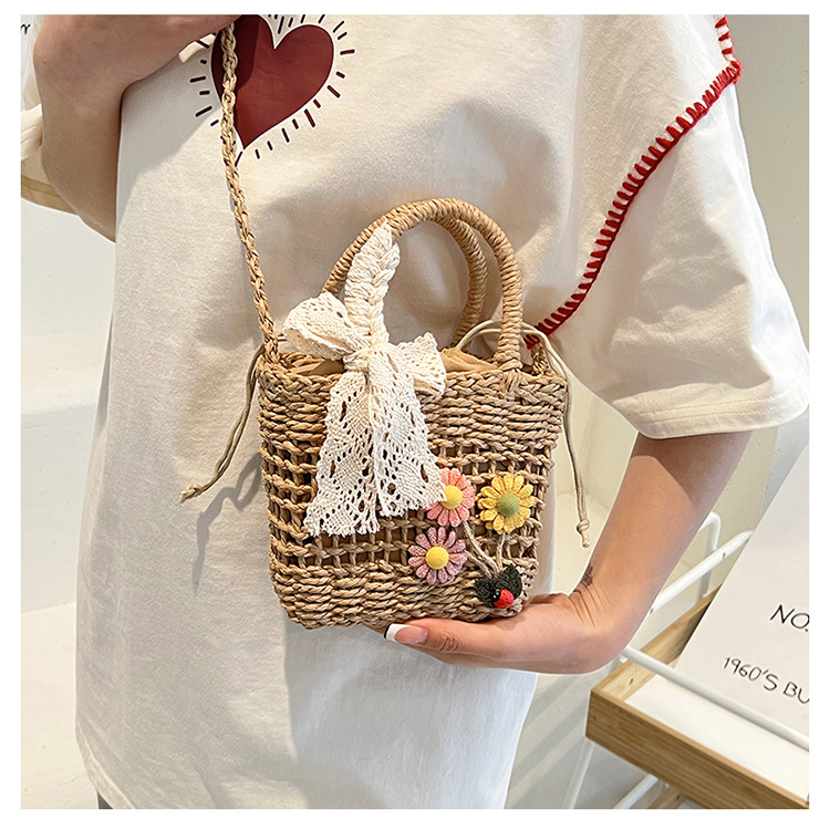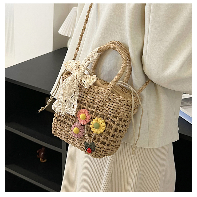휴대용 밀짚 짠 가방 작은 신선한 해변 해변 휴일 스타일 짠 가방 2024 여성을위한 새로운 크로스 바디 버킷 가방