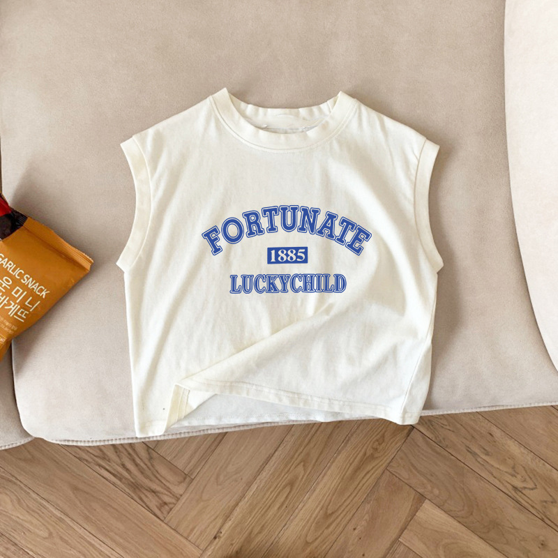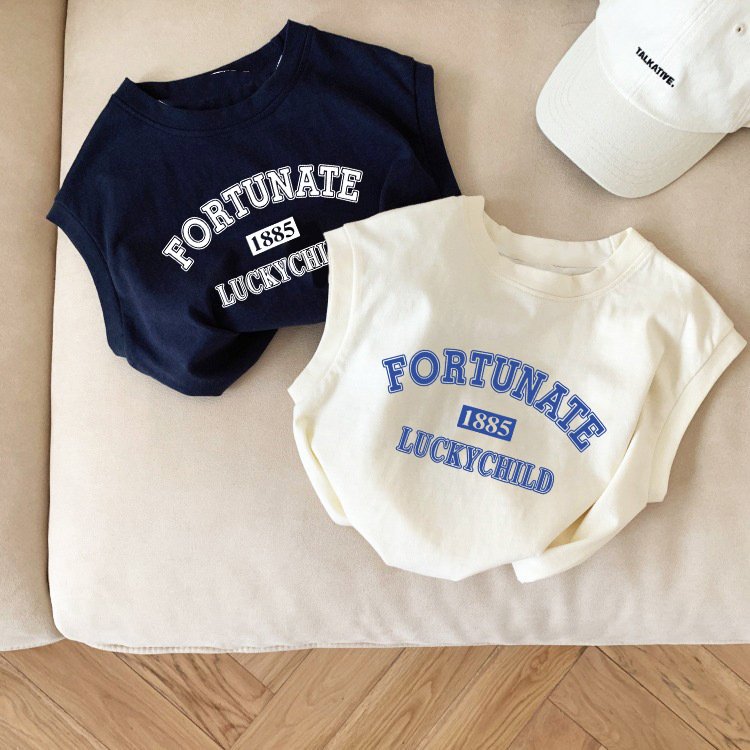 순수 코튼 베이비 어린이 민소매 티셔츠 2025 재미있는 문자 패턴 다목적 소년과 소녀 조끼 스웨트 탑 여름스토어 가기