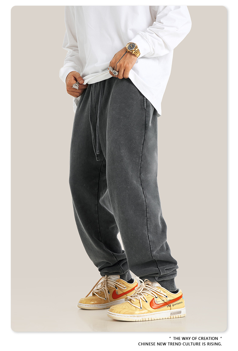 남성복 | 2025 가을 스트리트 패션 빈티지 빅사이즈 루즈핏 조거 팬츠 레트로 인스 워싱 스웨트팬츠 남성용스토어 가기