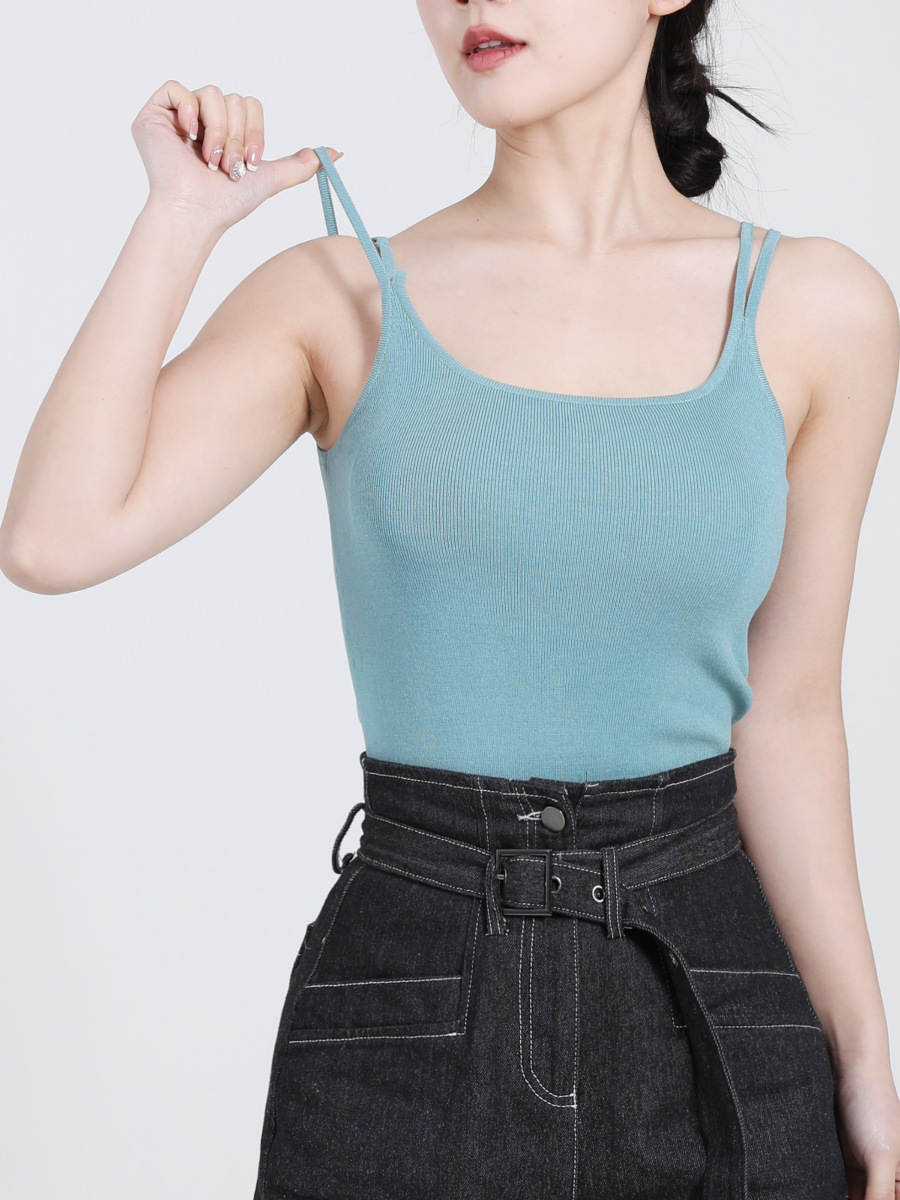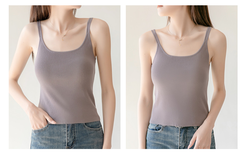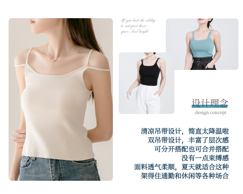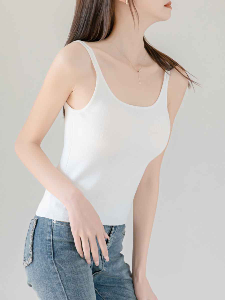 2025 여름 아이스 실크 섹시 슬리브리스 여성용 패셔너블 이너웨어 아름다운 등라인 숏탑 니트웨어스토어 가기