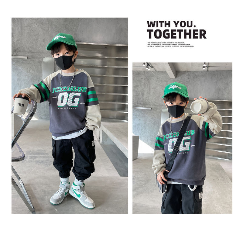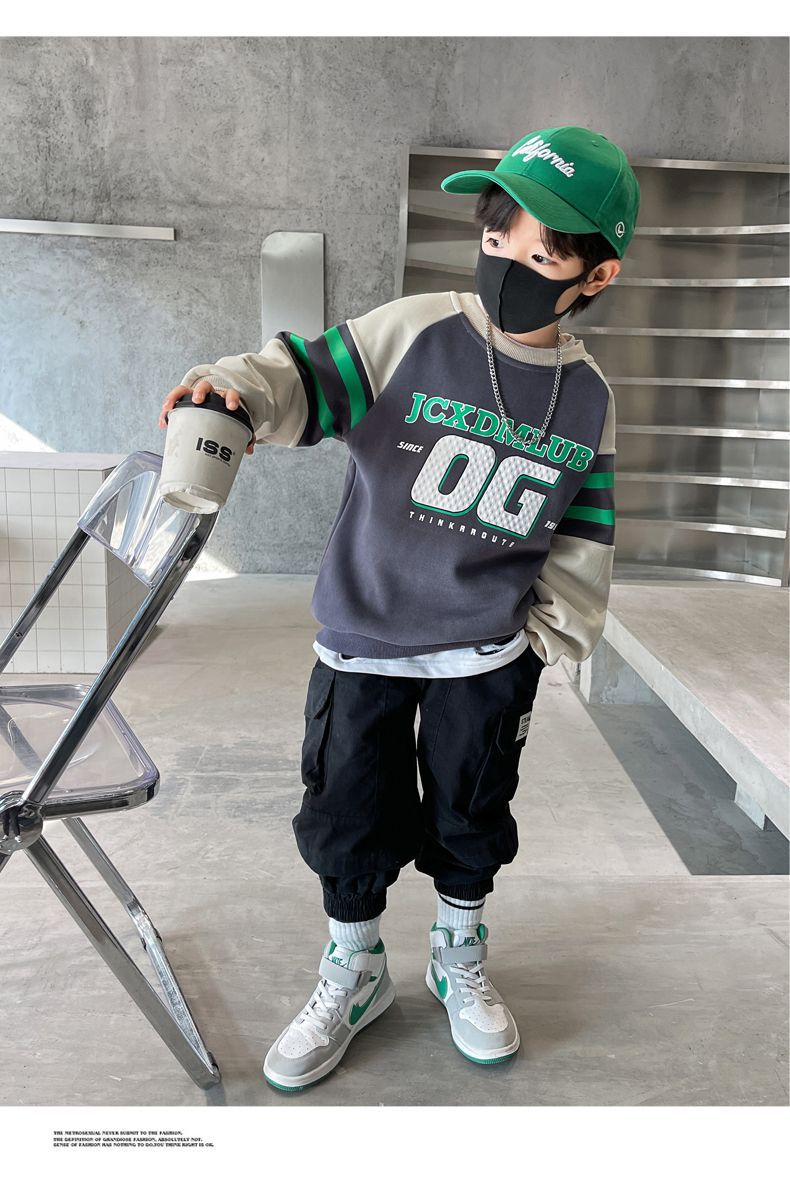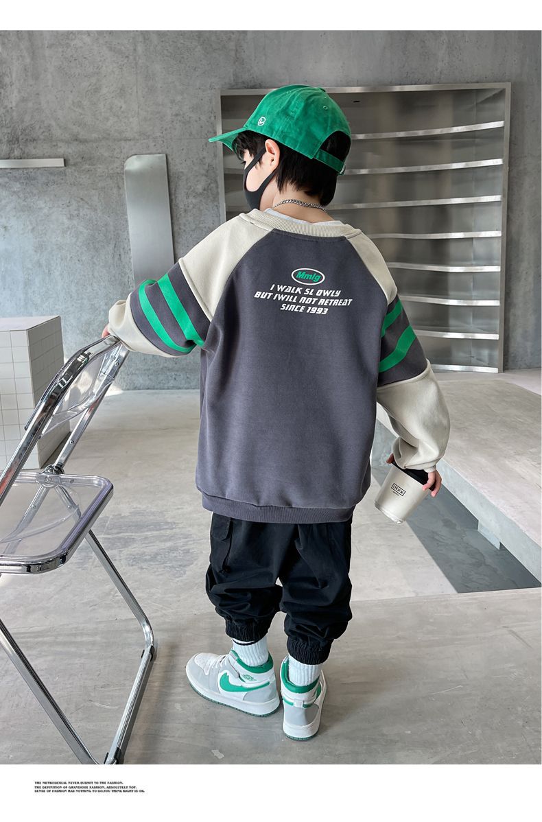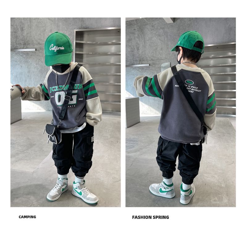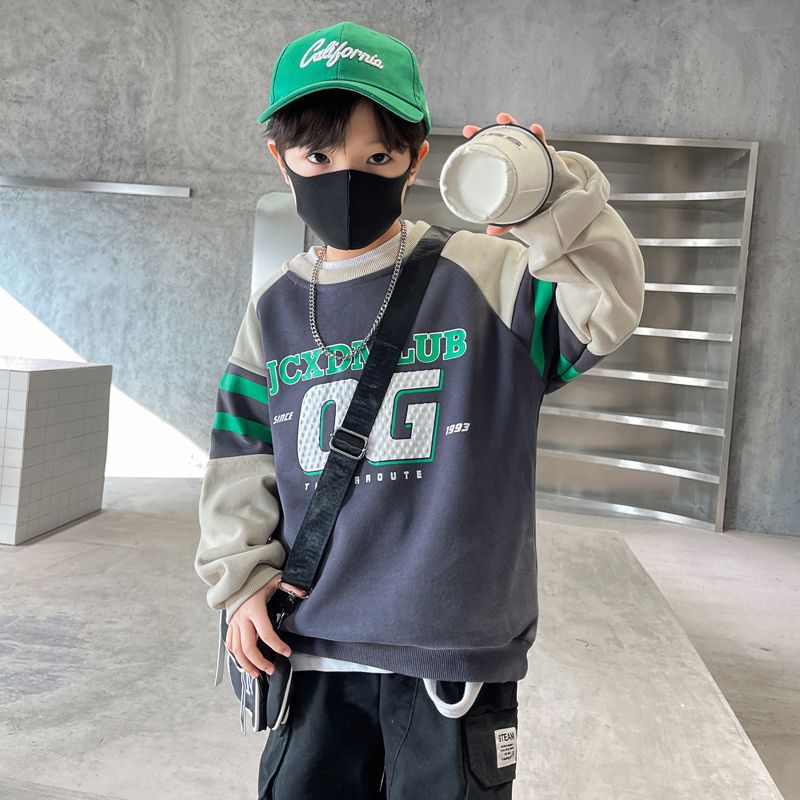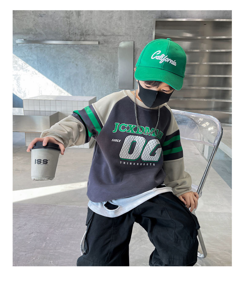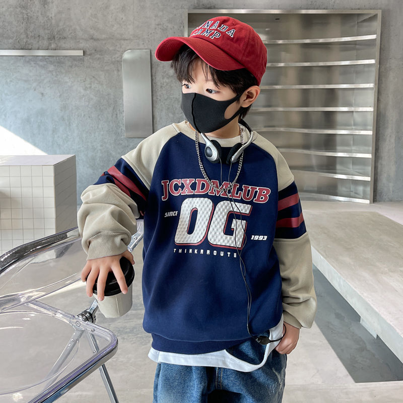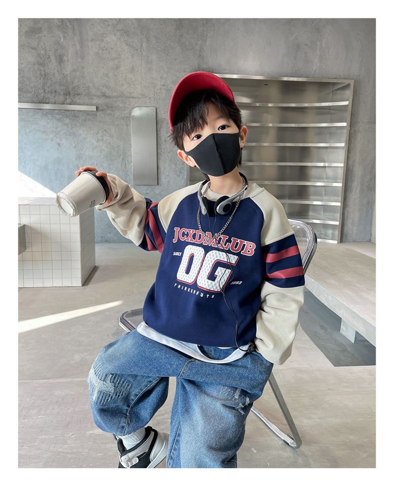 소년 봄, 가을 운동복 2025 새로운 가을, 겨울 중대형 아동 패션 서양식 인터넷 연예인 긴팔 탑 트렌드