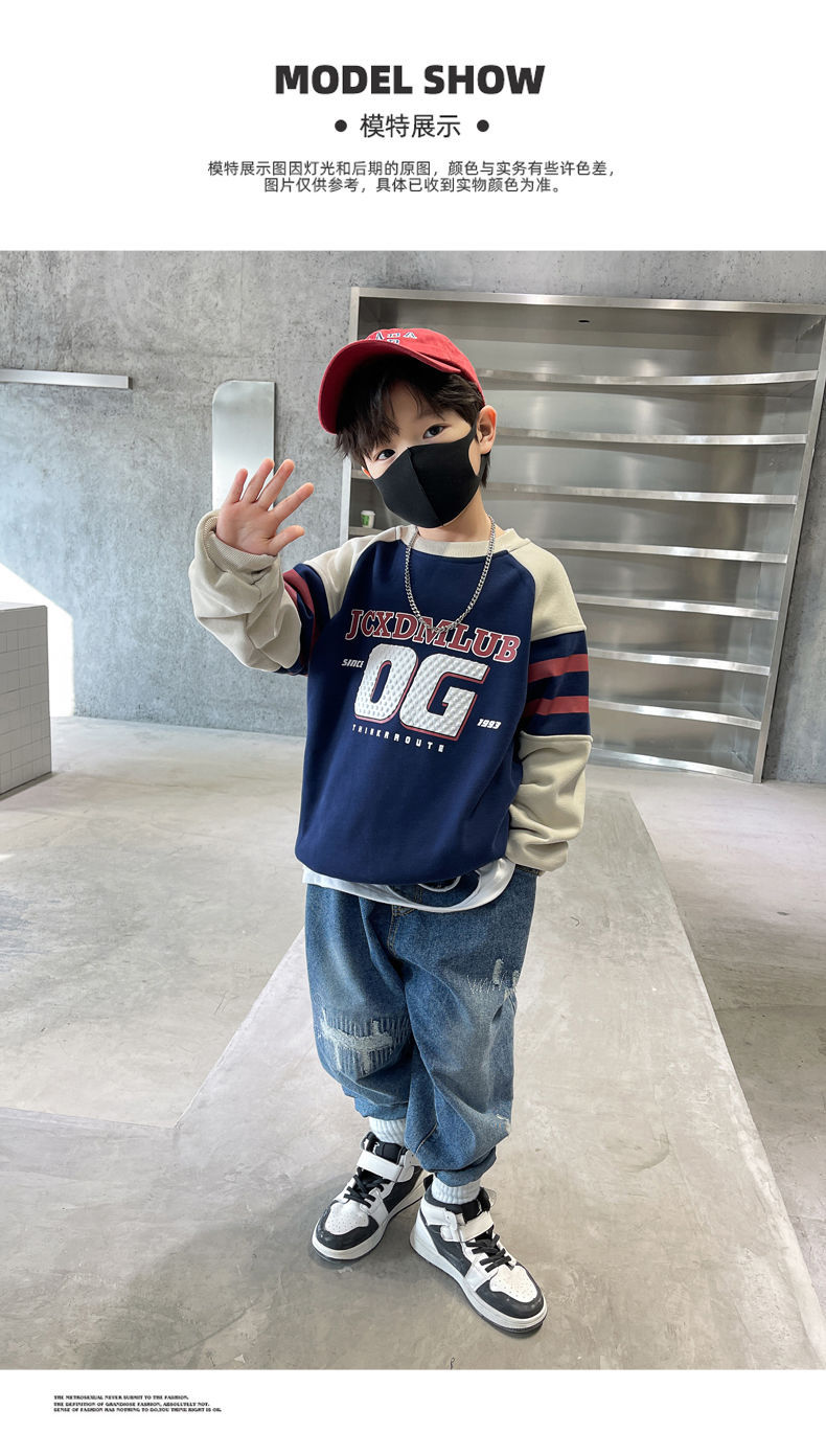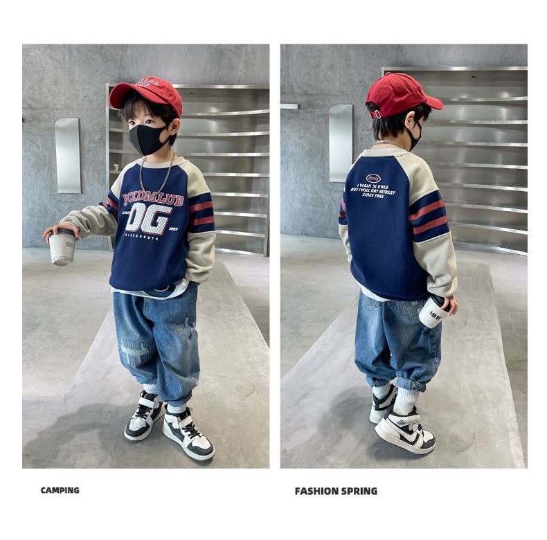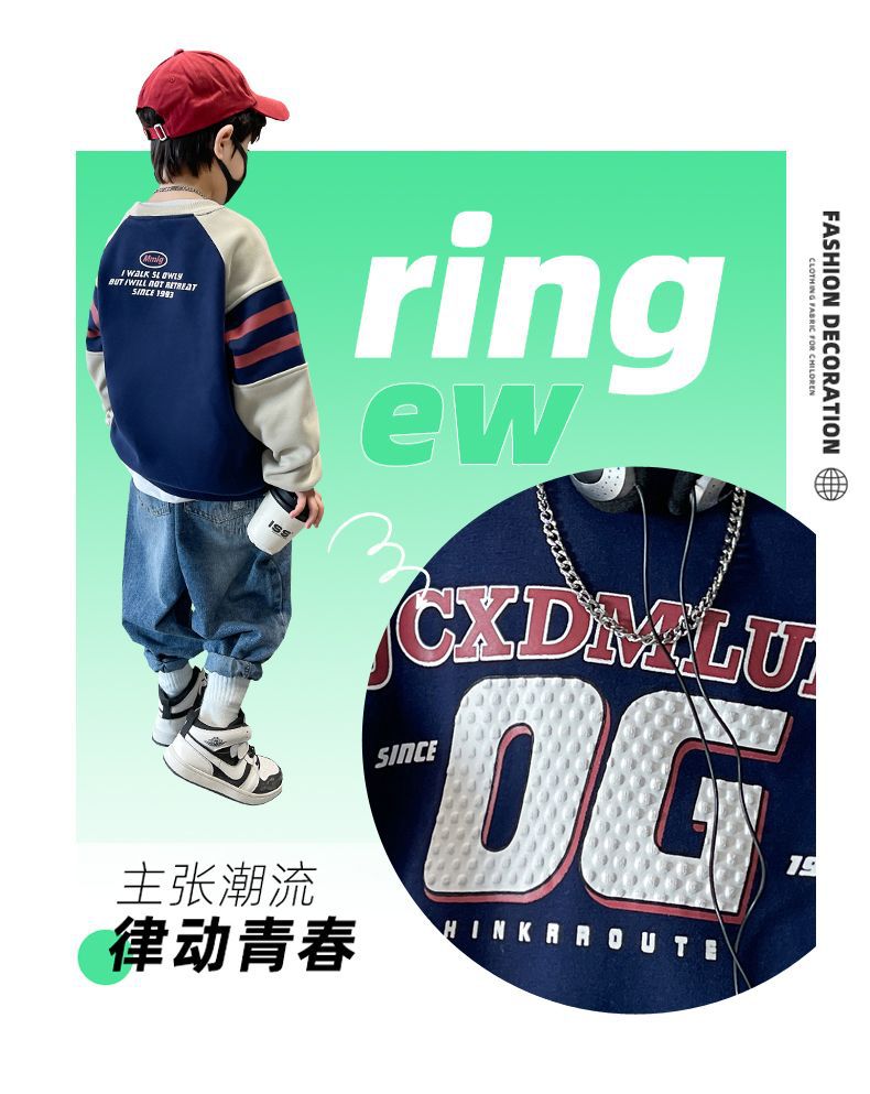 소년 봄, 가을 운동복 2025 새로운 가을, 겨울 중대형 아동 패션 서양식 인터넷 연예인 긴팔 탑 트렌드스토어 가기