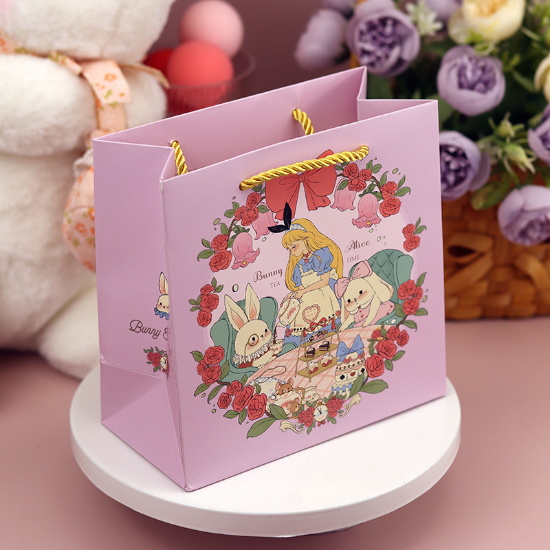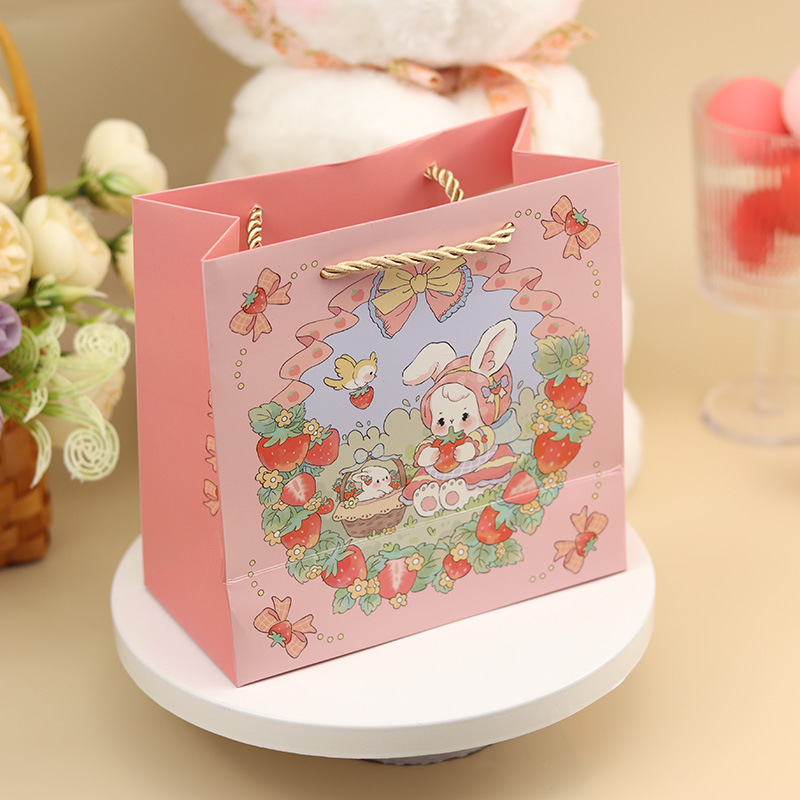 • 딸기 토끼 종이 봉투; 중간 사이즈 20*20*8.5cm; 세 가닥 끈