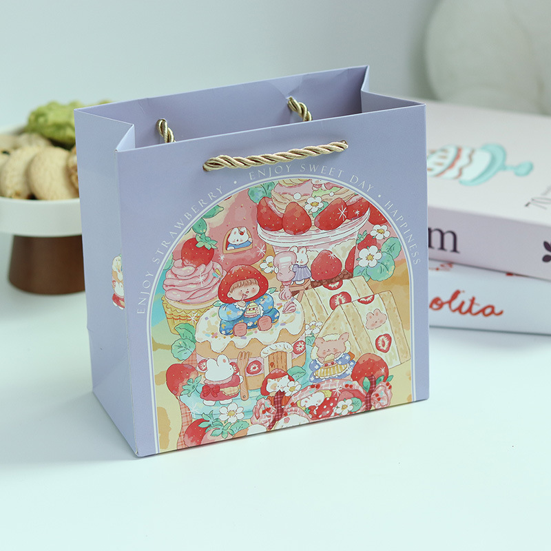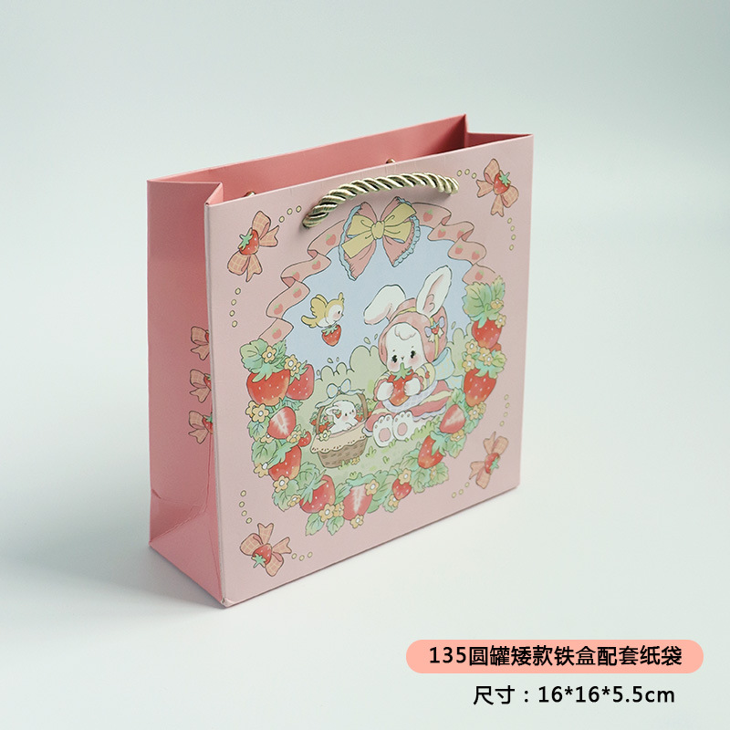 • 딸기 토끼 짧은 종이 봉지, 작은 크기 16*16*8cm, 세 가닥 로프