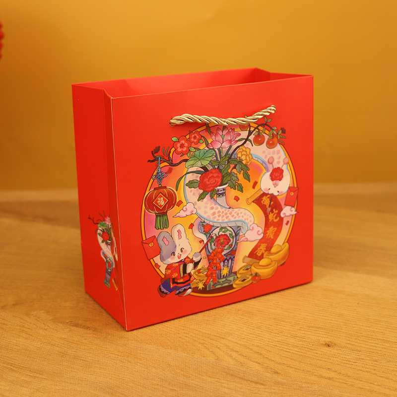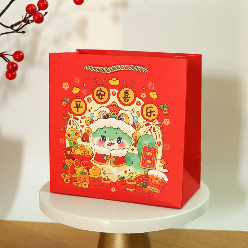 • 스피릿 스네이크 봄 종이 봉지, 작은 크기 16*16*8cm, 3가닥 로프