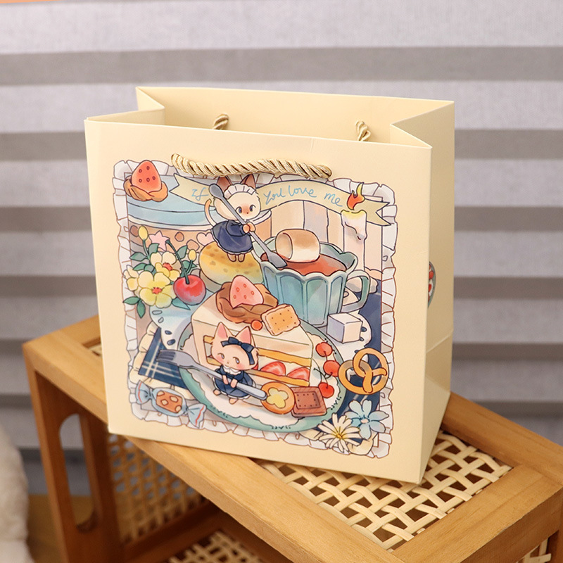 • 고양이 디저트 종이 봉투; 소형 16*16*8cm; 세 가닥 끈