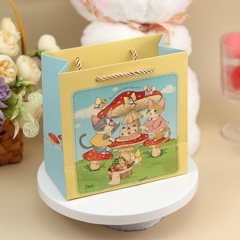 • 고양이 파티 종이 봉투; 중간 사이즈 20*20*8.5cm; 세 가닥 끈