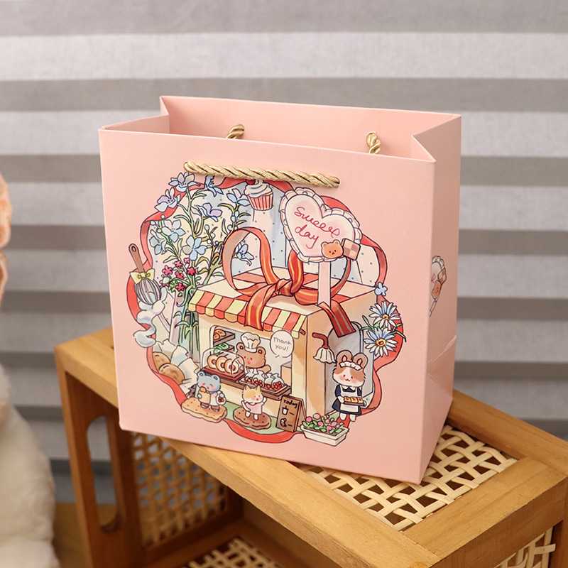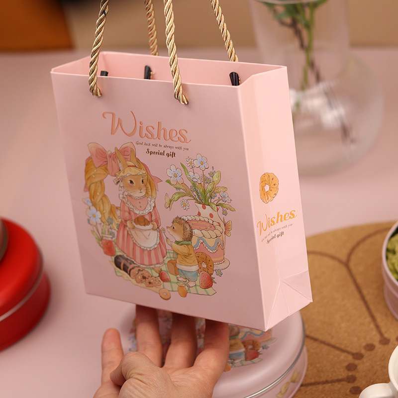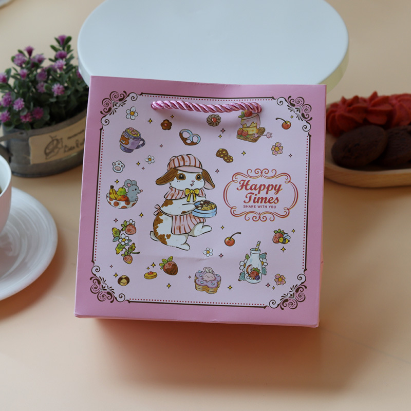 • 핑크 쿠키 토끼 종이 봉투; 소형 16*16*8cm; 세 가닥 끈