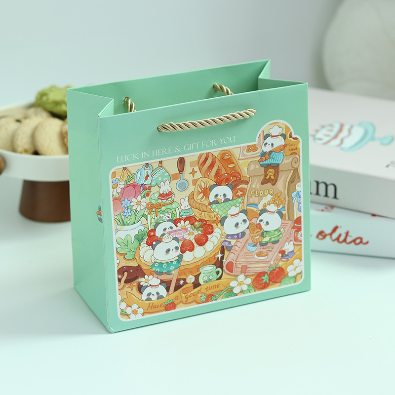 • 팬더 케이크 종이 봉투; 중간 사이즈 20*20*8.5cm; 세 가닥 끈