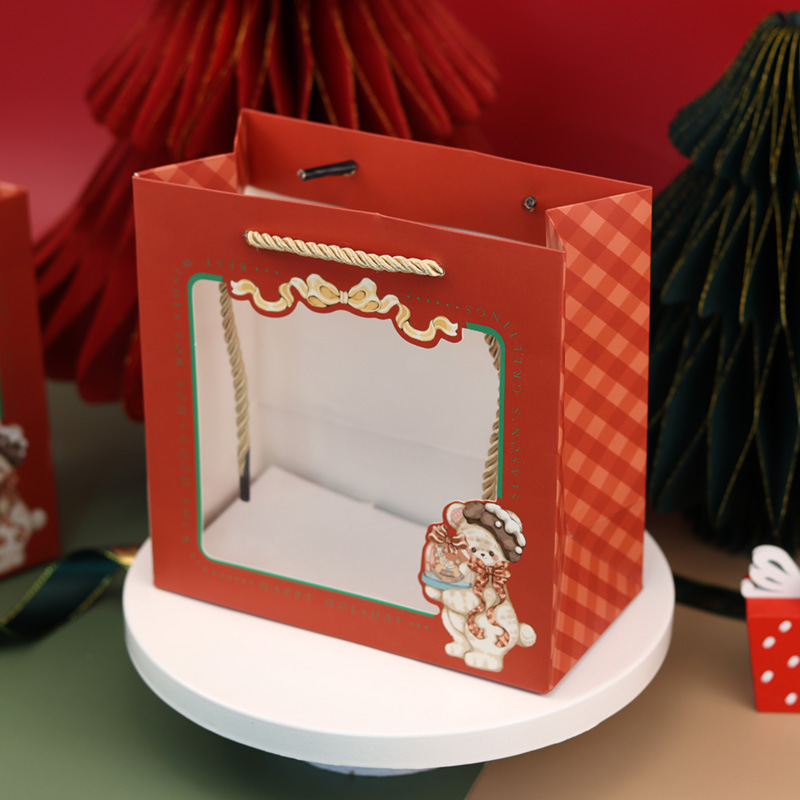 • 크리스마스 레드 창문형 쇼핑백; 소형 16*16*8cm; 3줄 로프