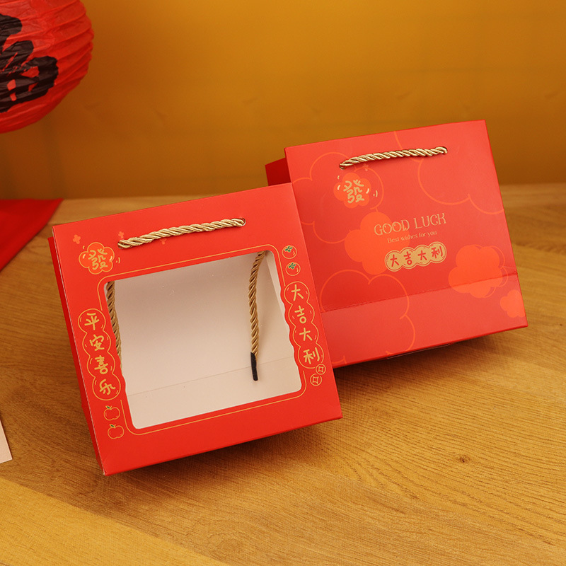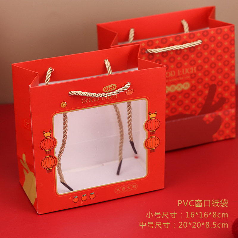 철 상자 일치하는 종이 가방 원래 그림 토끼 핸드백 프로스트 투명 핸드백 새해 선물 종이 봉투 재고