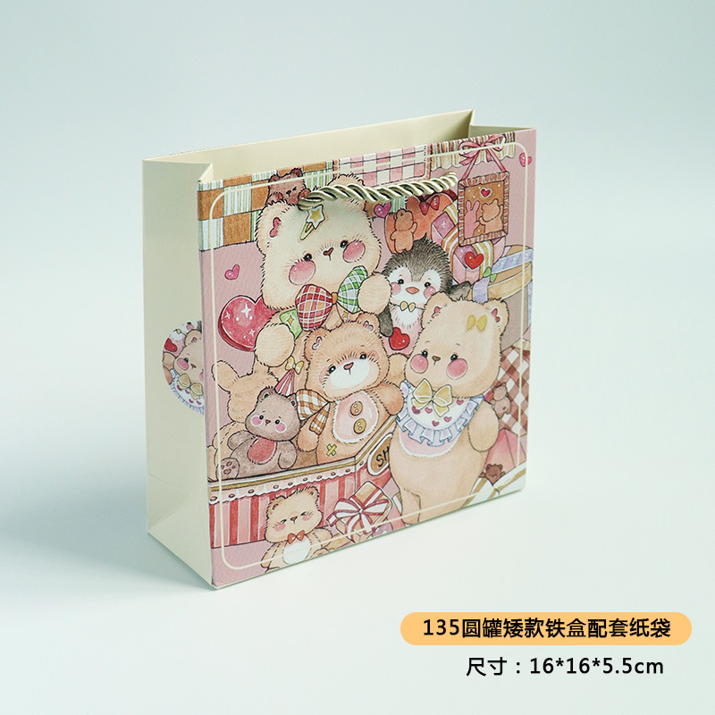 • 쿠키베어 짧은 종이봉투, 작은 크기 16*16*8cm, 3가닥 로프