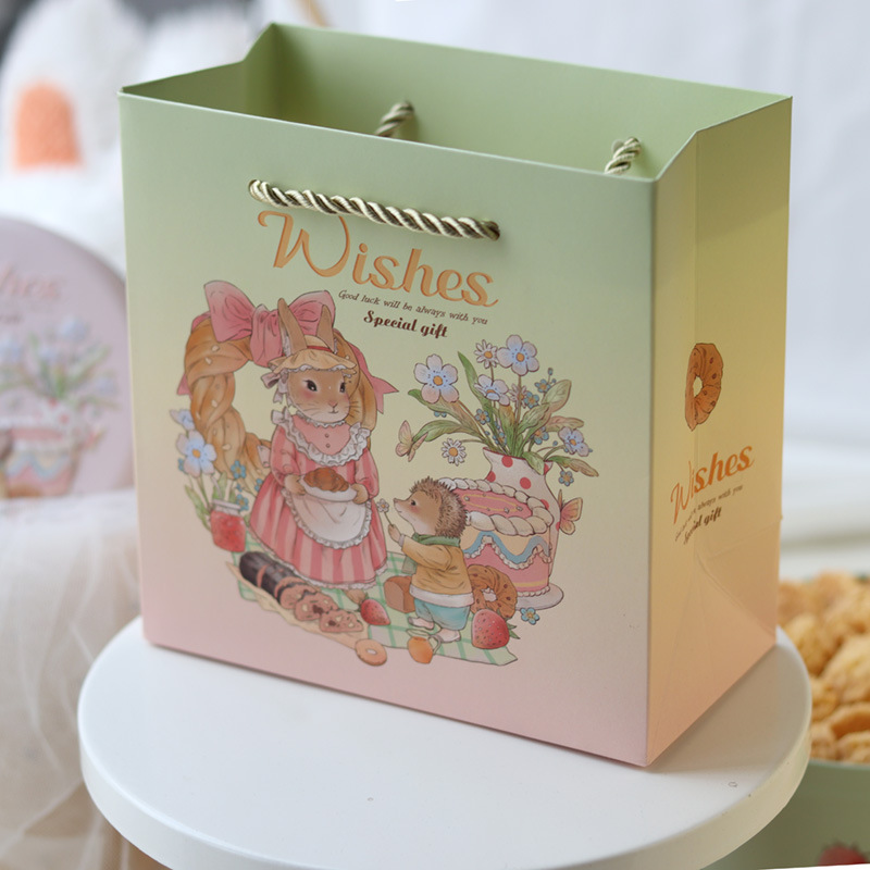 • 그라데이션 토끼 종이 봉투; 중간 사이즈 20*20*8.5cm; 세 가닥 끈