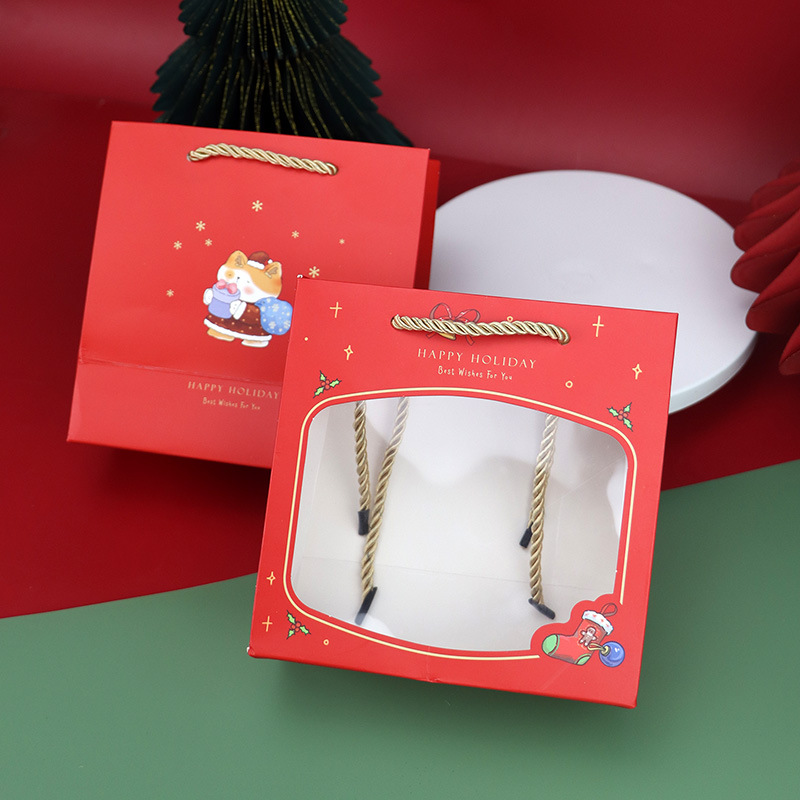 • 큰 빨간 크리스마스 창 종이 봉투, 작은 크기 16*16*8cm, 3가닥 로프