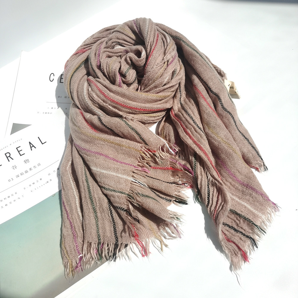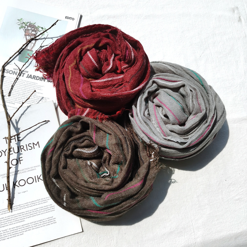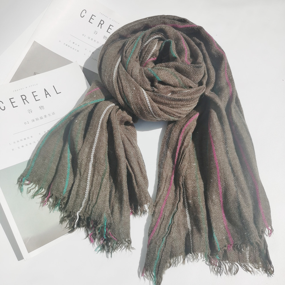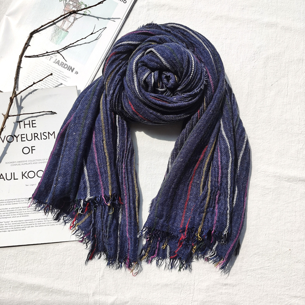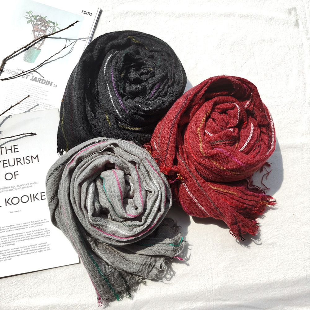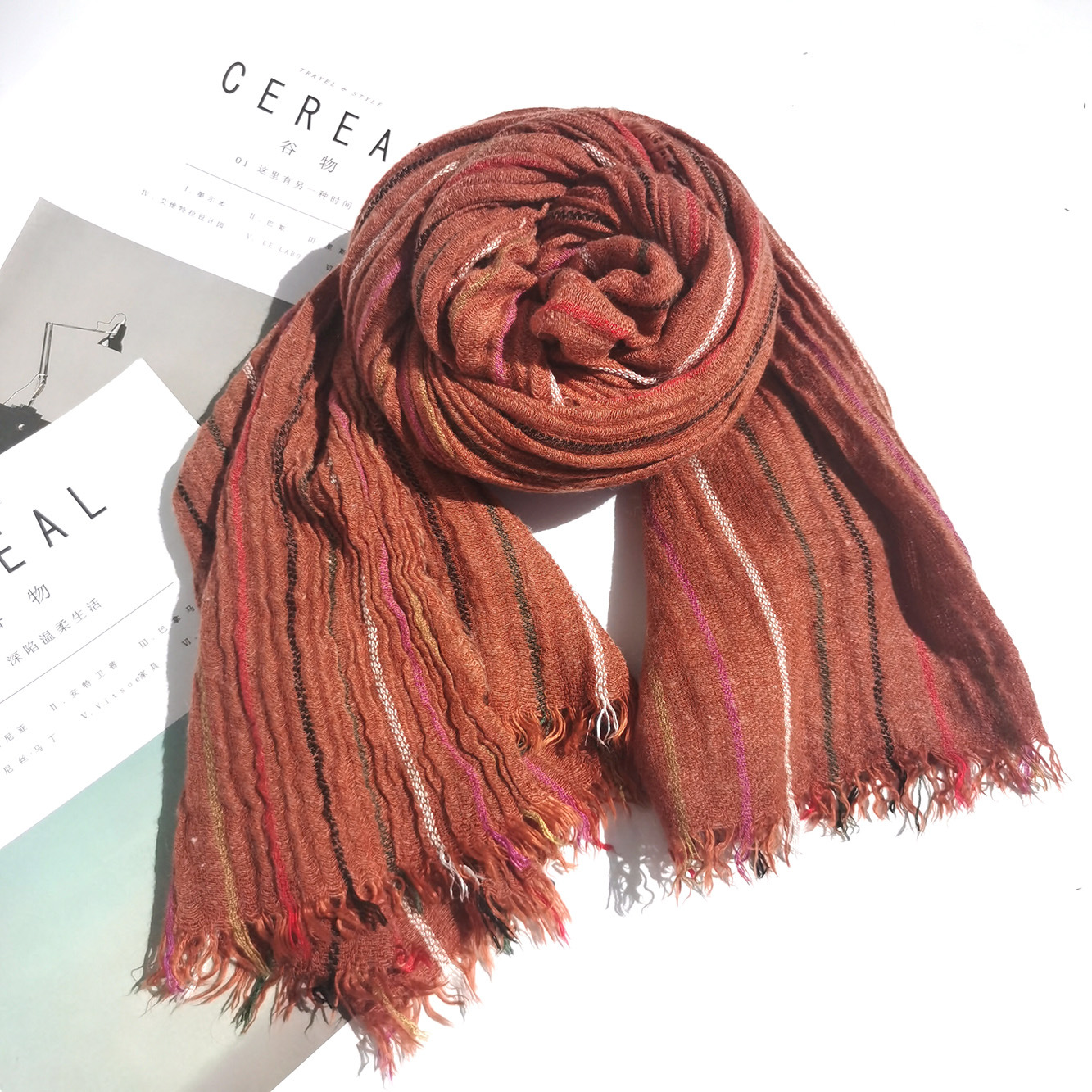 Yunnan 여행 조커 울 스카프 여성 얇은 작은 술 자연 주름 스트라이프 스카프 중간 긴 스카프 도매스토어 가기