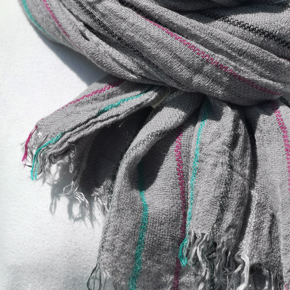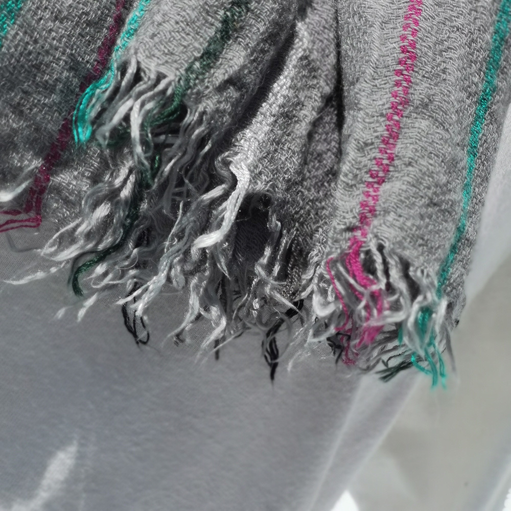 Yunnan 여행 조커 울 스카프 여성 얇은 작은 술 자연 주름 스트라이프 스카프 중간 긴 스카프 도매