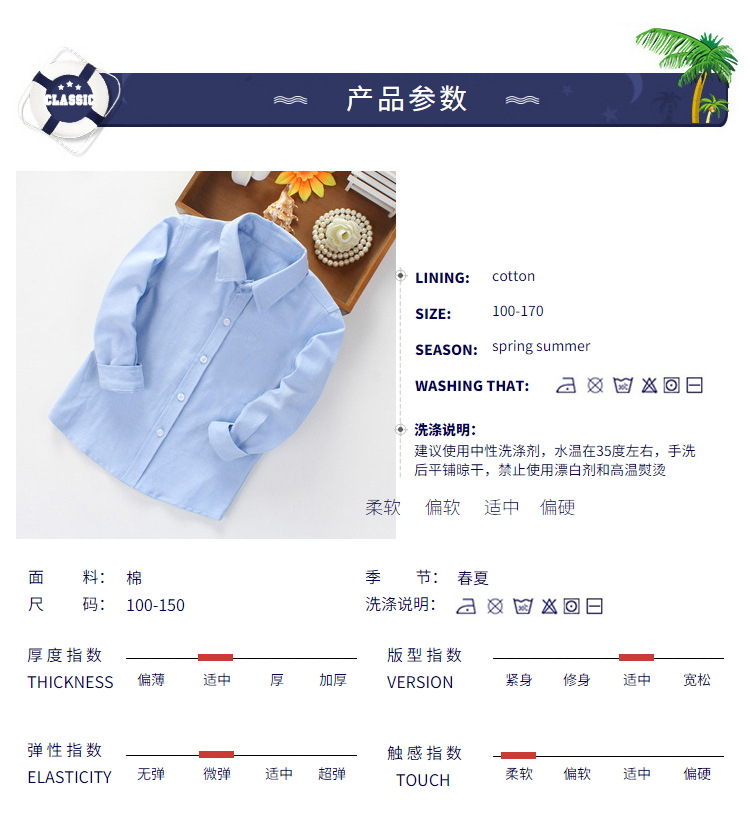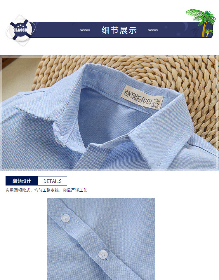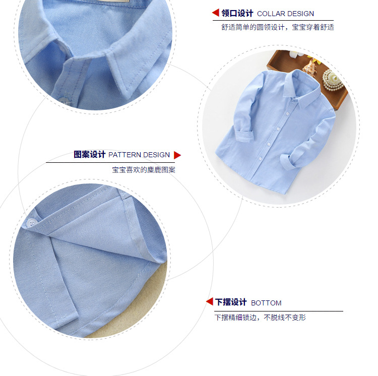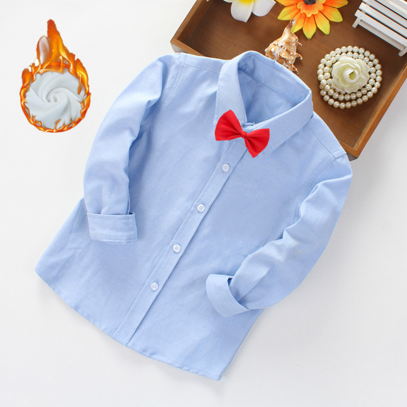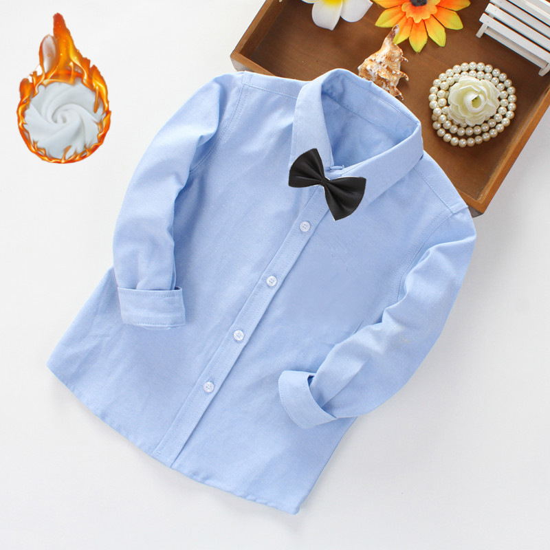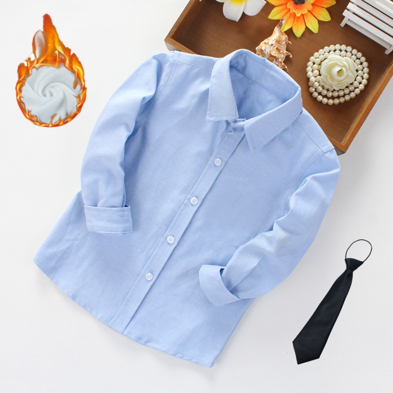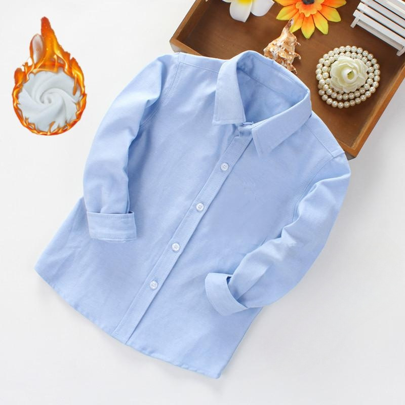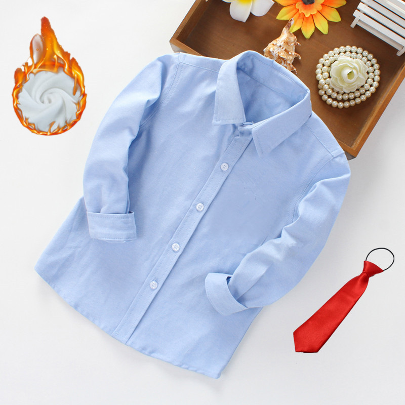 【순수 블루 셔츠】남학생 긴팔 학생 공연용 여아 이너웨어 남녀공용 블루 플리스 셔츠 어린이용