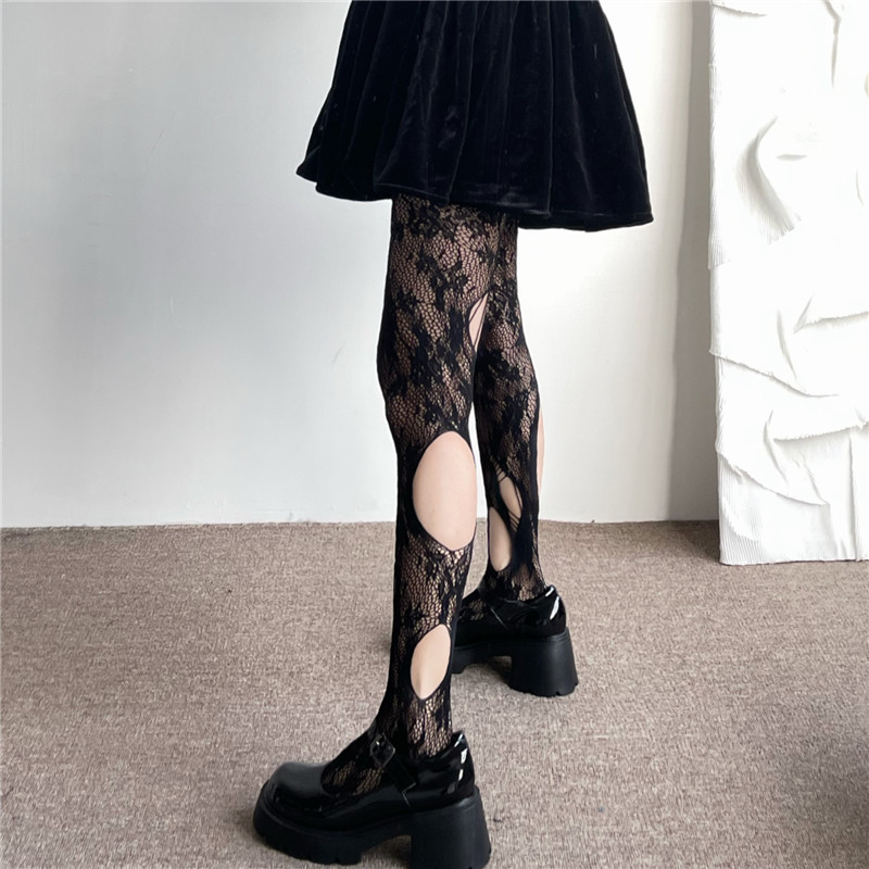 찢어진 팬티 스타킹 중공 낚시 그물 로즈 밀레니엄 스파이스 걸스에서 트렌디 한 성격 비대칭 디자인 블랙 실크스토어 가기