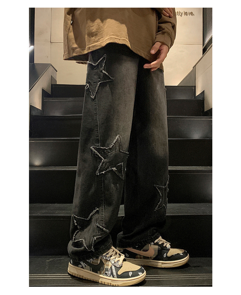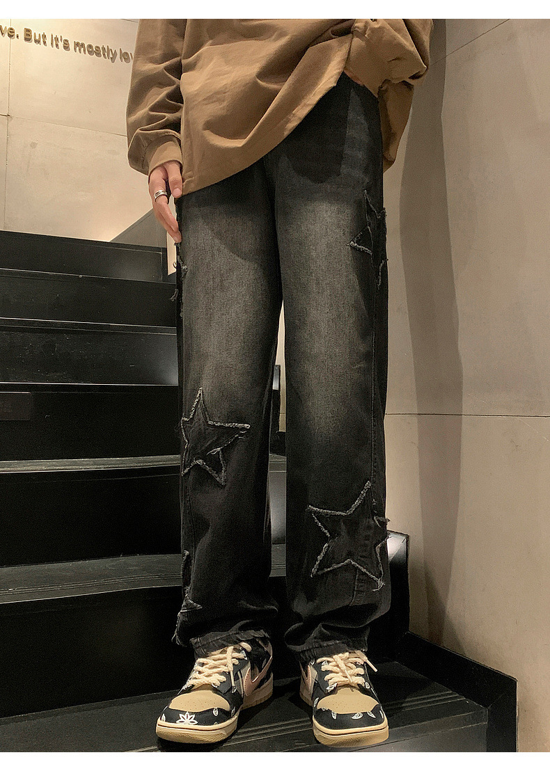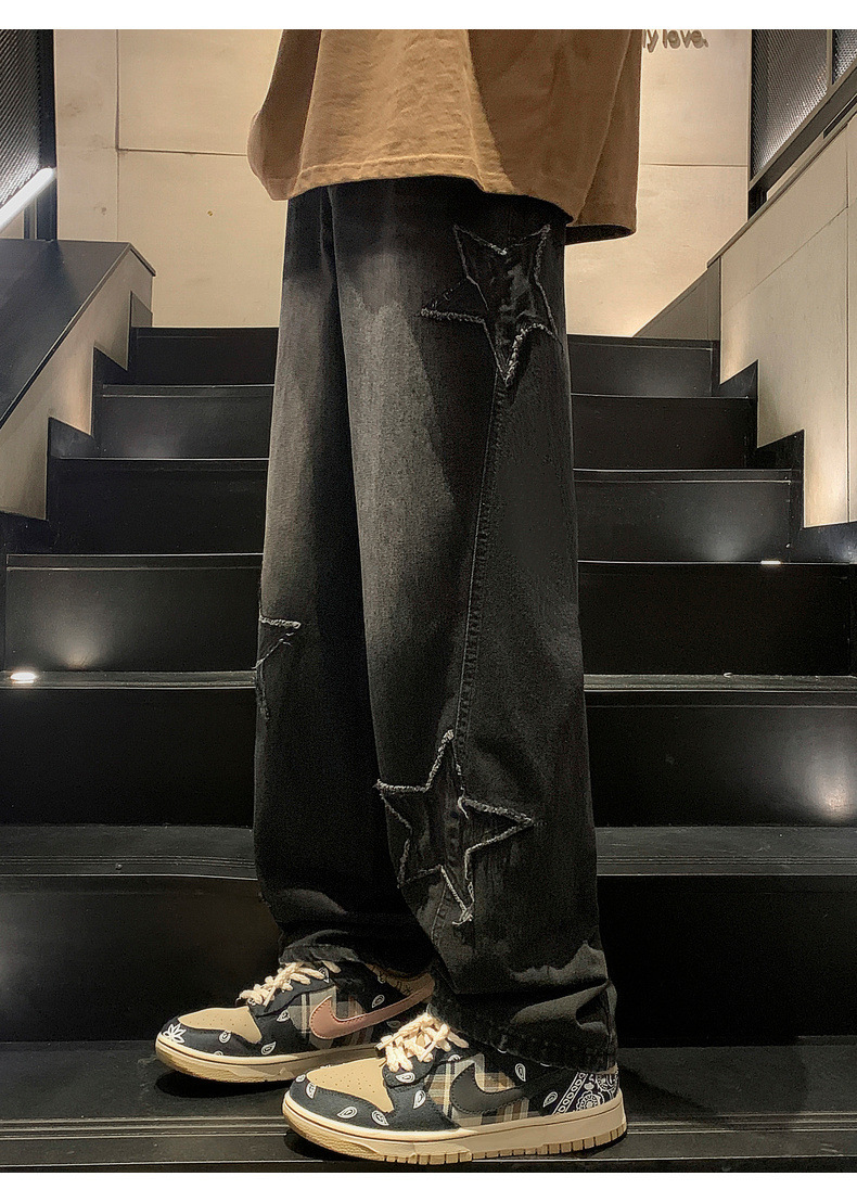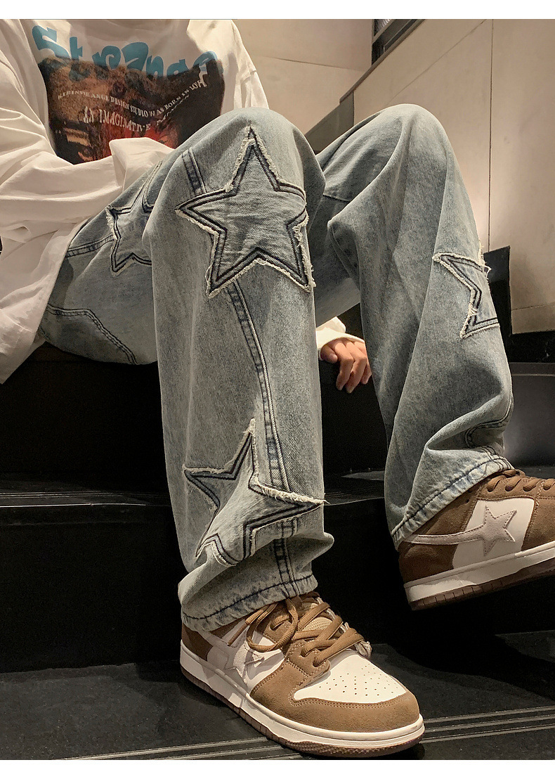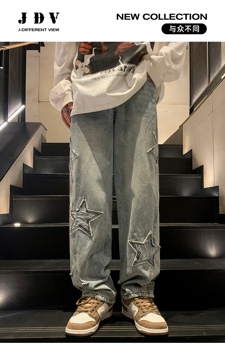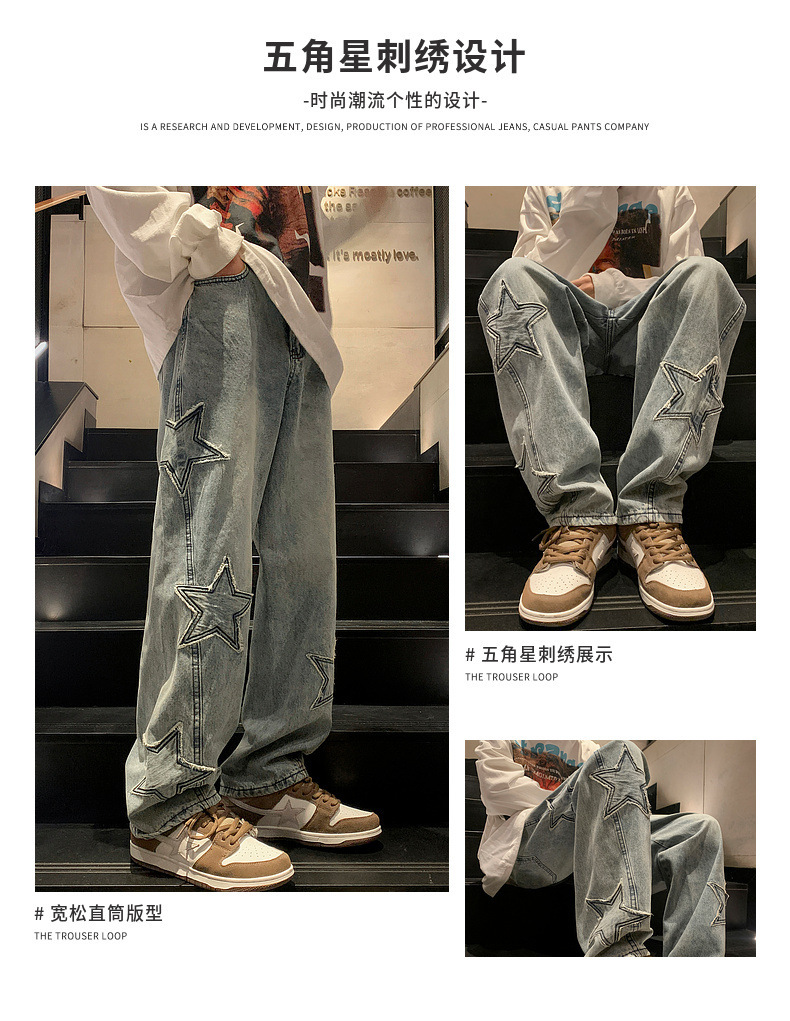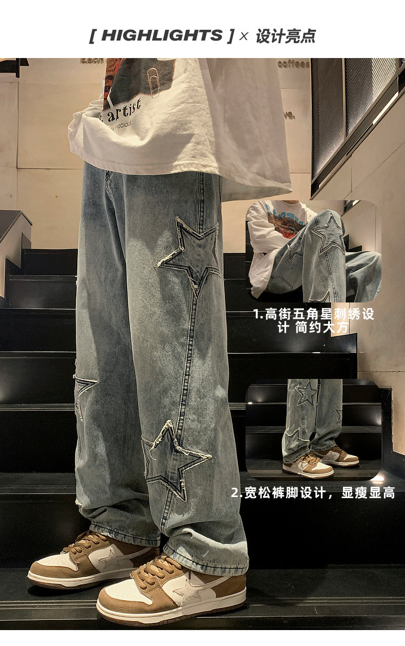 스트레이트 데님 팬츠 남성용 하이 엔드 봄 패션 브랜드 와이드 레그 팬츠 봄과 가을 느슨한 아메리칸 스타일 하이 스트리트 바이브 팬츠스토어 가기