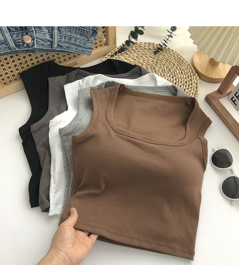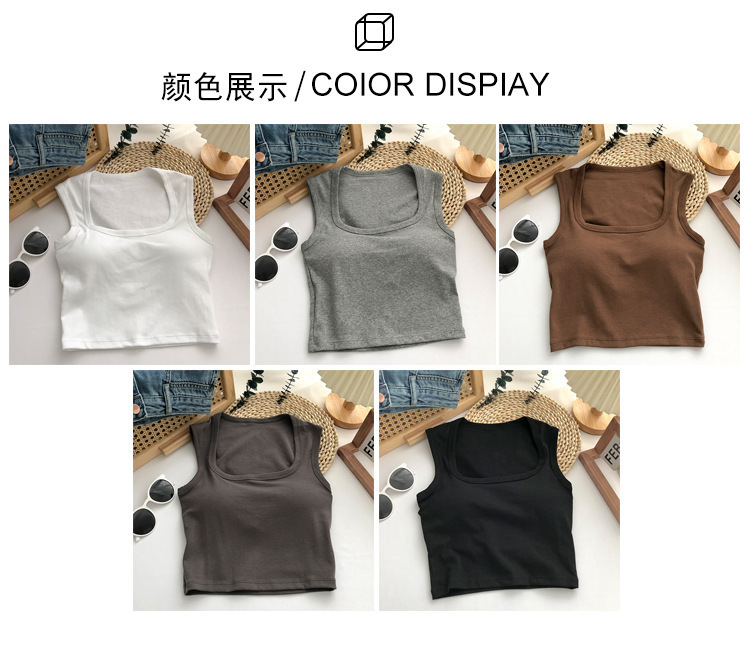 가슴 패드가있는 새로운 한국 스타일 와이드 숄더 조끼 여성용 솔리드 컬러 스퀘어 칼라 모든 매치 착용 프리 속옷 여성용 슬림핏 베이스 조끼스토어 가기