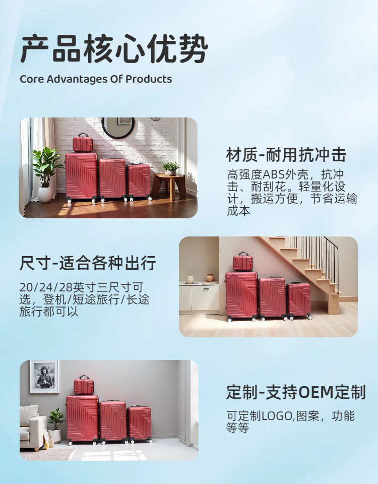 공장 직접 공급 ABS 탑승 가방, 여행 가방, 트롤리 가방, 화장품 가방, 3피스 및 4피스 세트, 로고를 사용자 정의할 수 있습니다.스토어 가기