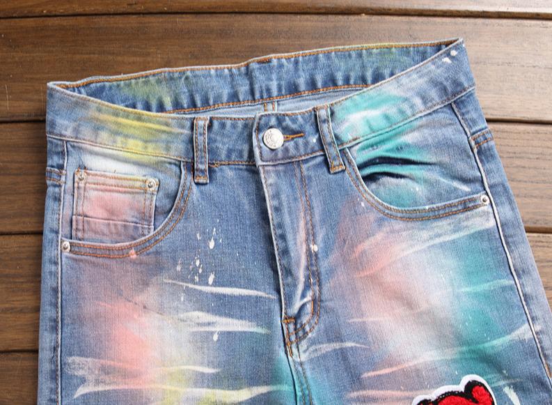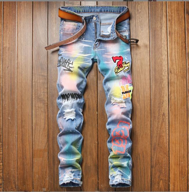 2023 새로운 자수 리핑 슬림 핏 탄성 남성 다리 청바지 대외 무역 아마존 청바지 남성스토어 가기