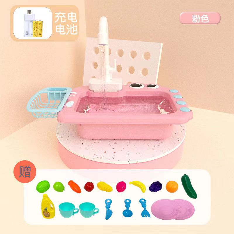 어린이 식기 세척대 시뮬레이션 주방용품 전기 순환 물 콘센트 세척 테이블 교육 놀이 집 물 식기 세척기 장난감스토어 가기