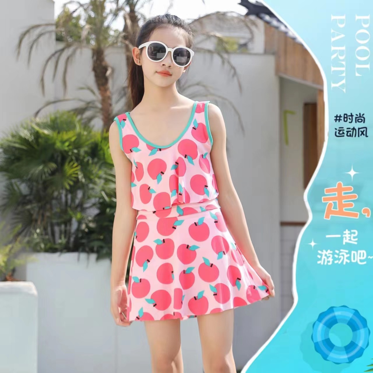 새로운 어린이 수영복 여아 원피스 스커트 수영복 여아 한국 귀여운 학생 온천 수영복
