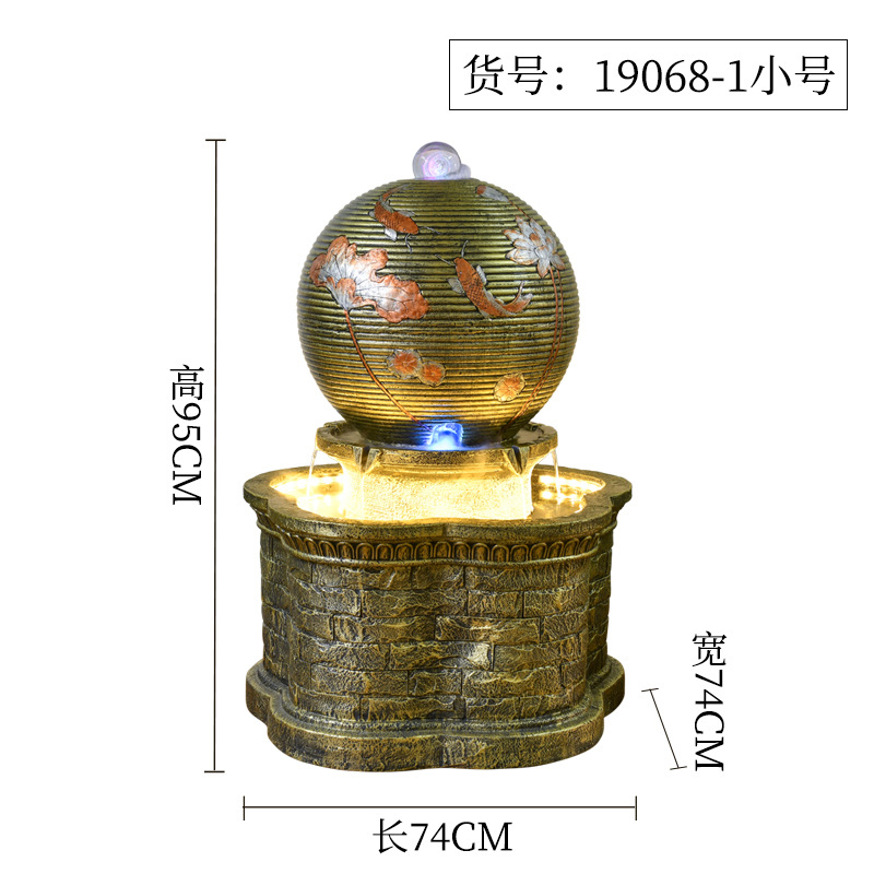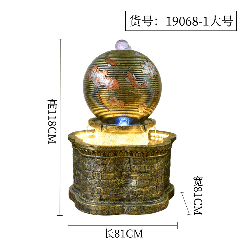 달리는 시간 풍수 공 장식 거실 실내 순환 분수 풍경 바닥 돈 롤링 물 장식품스토어 가기
